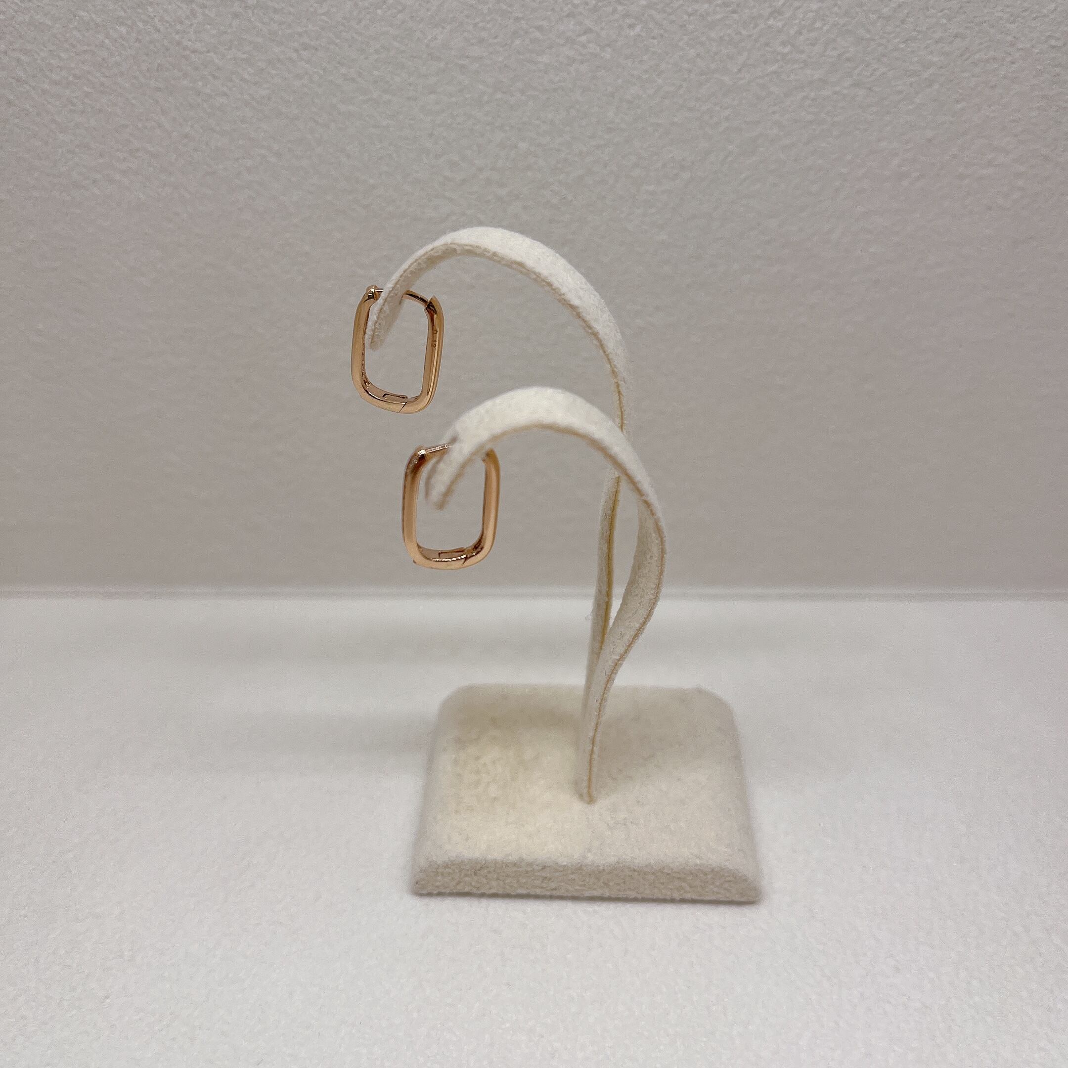 丸みのあるスクエア型のフープピアス。 素材 : K18PG 石 : ダイヤモンド0.12ct サイズ:全長約1.4cm 商品番号:43157
