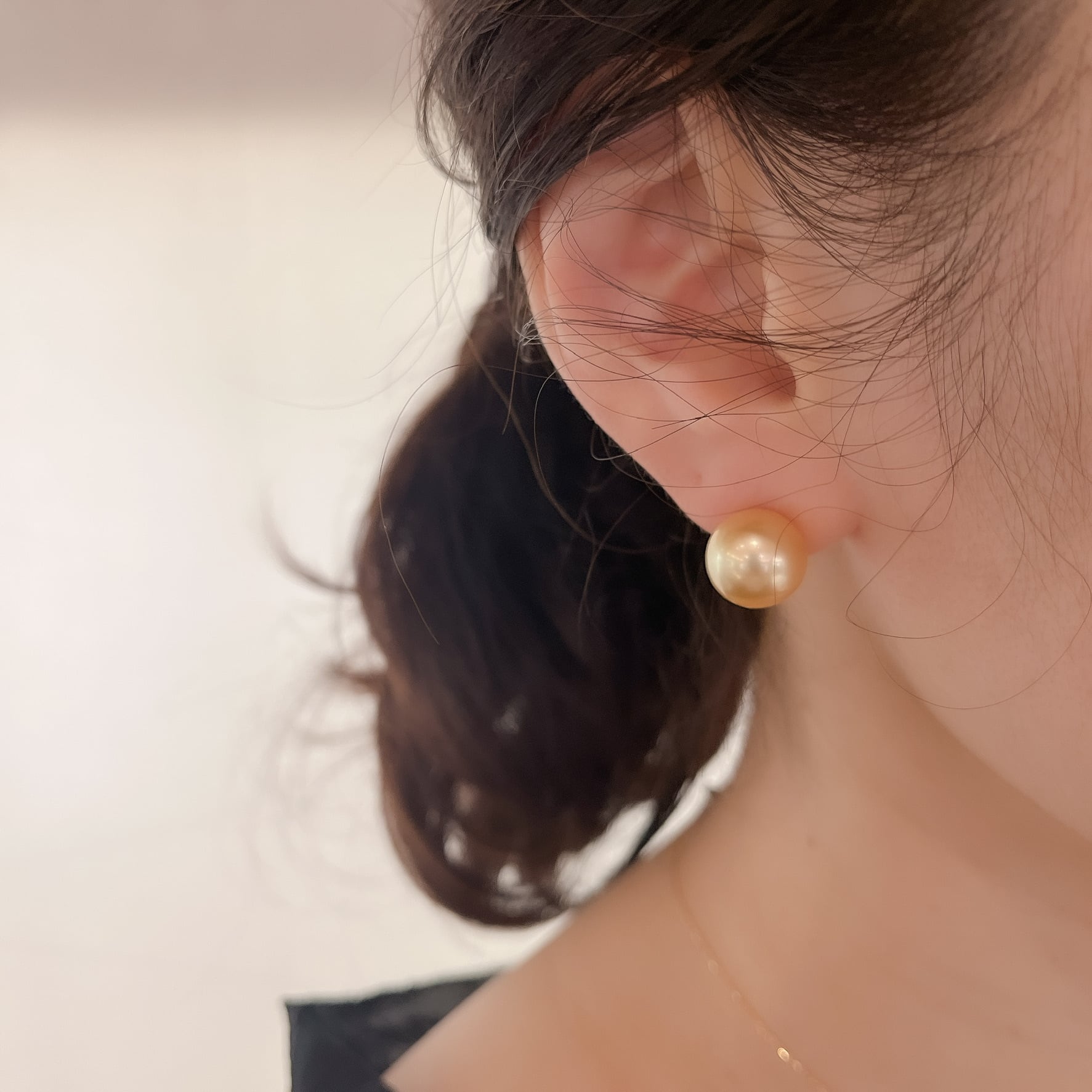 上品な輝きが耳元を彩るK18YG 南洋ゴールドパール ピアス。 南洋ゴールドパールの独特な色合いと光沢感が、シンプルながらもエレガントな印象を与えます。 素材:K18WG 石:南洋ゴールドパール サイズ:12-12.5mm 商品番号:43348