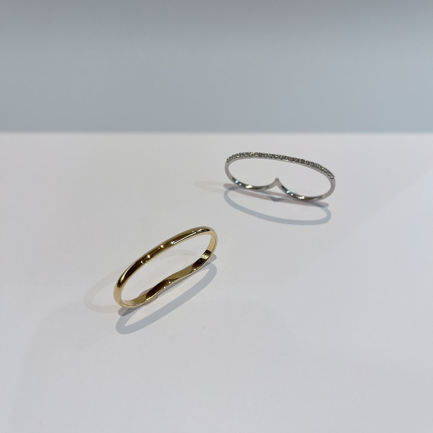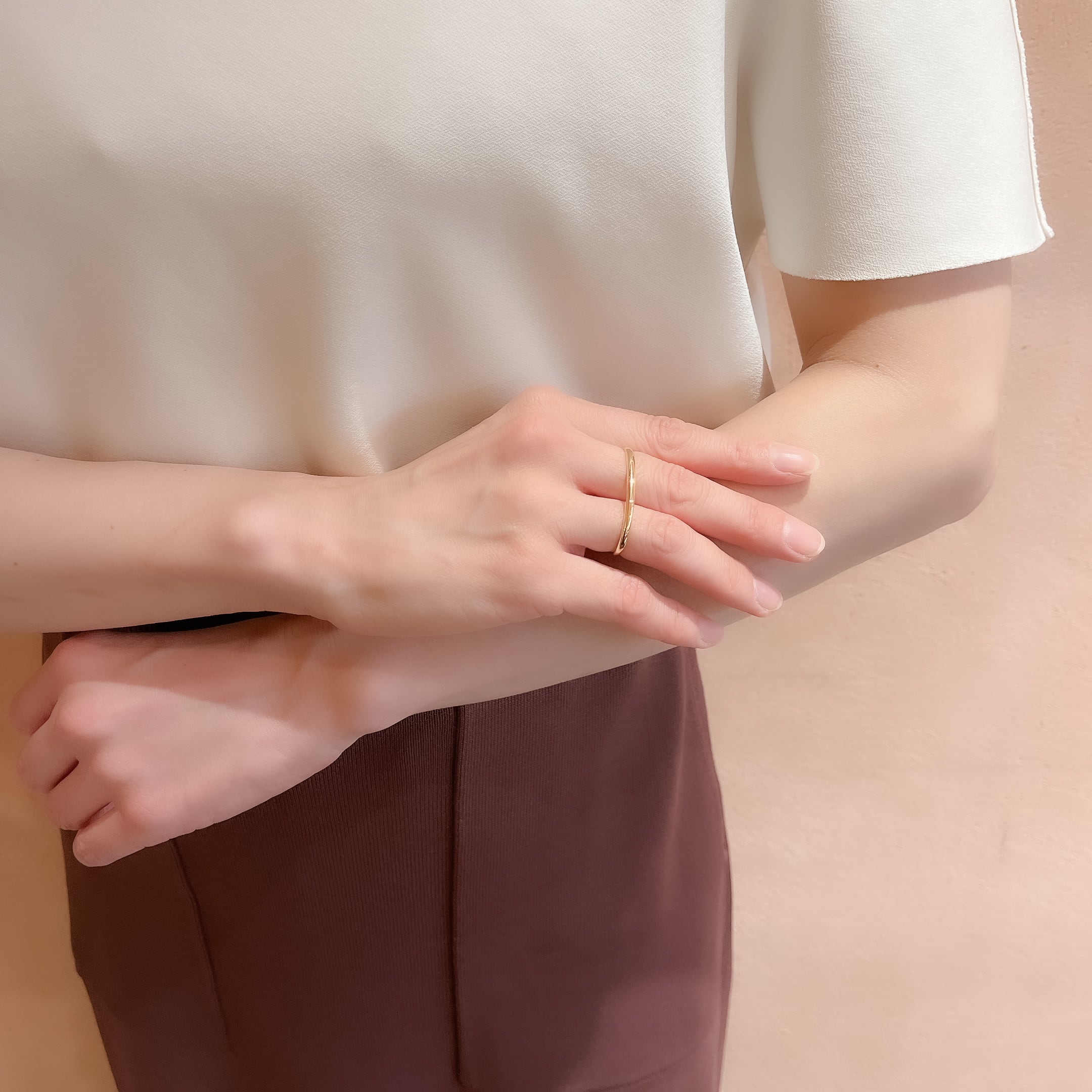 ダブルリングのシンプルさと洗練さが融合し、手元をより一層華やかに演出します。 素材 : K18YG サイズ:約10号・12号 商品番号:43375