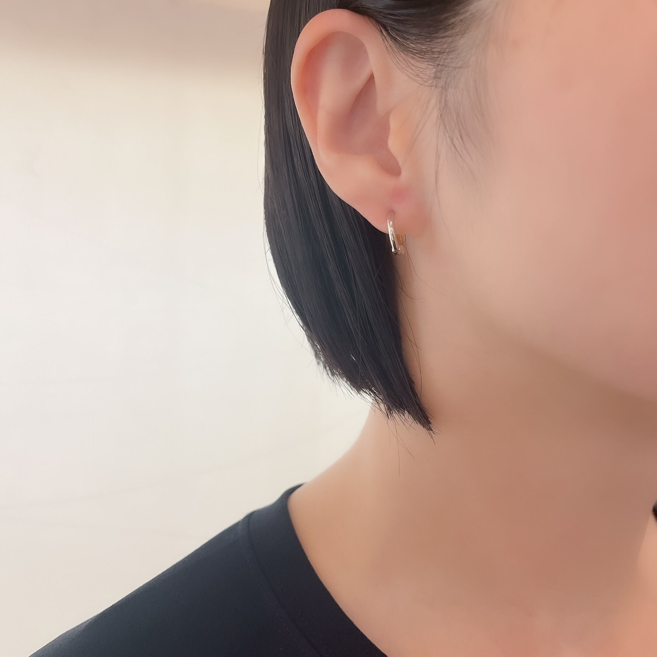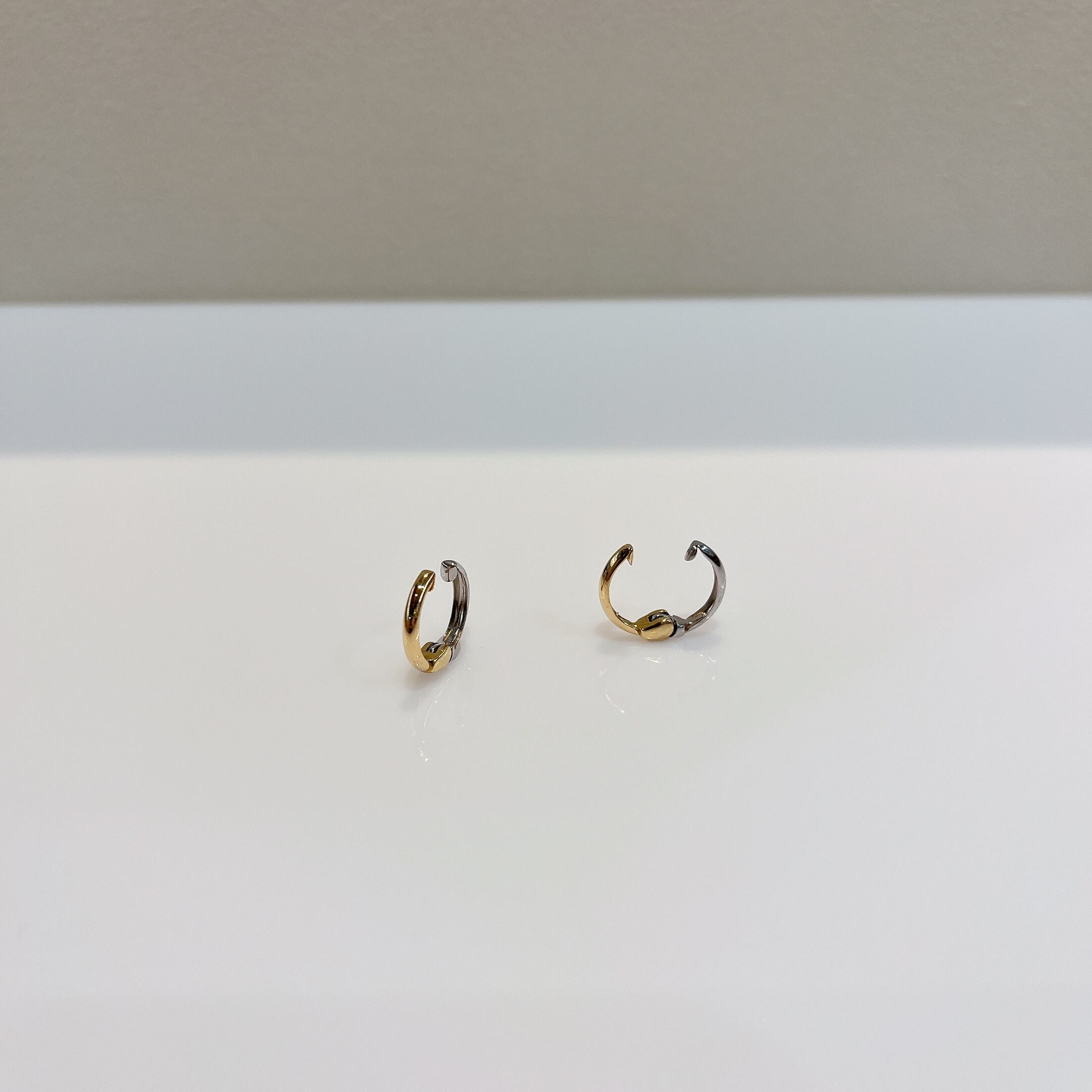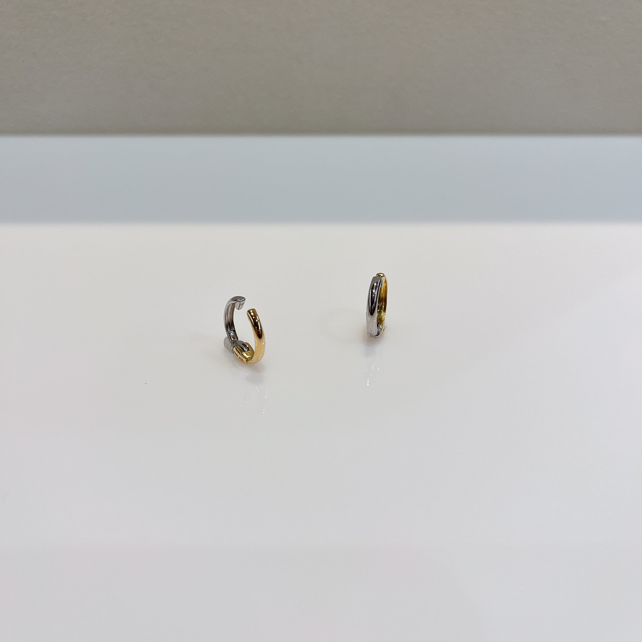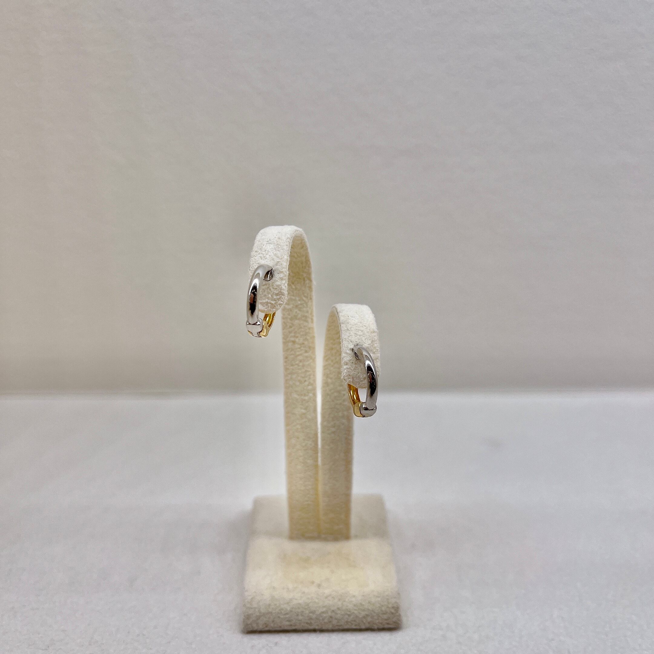 K18YG/PT900のリバーシブルピアリング。シンプルなデザインで、どんなシーンでも活躍する一品です。 素材:K18YG/PT900 全長:11mm 商品番号:43260