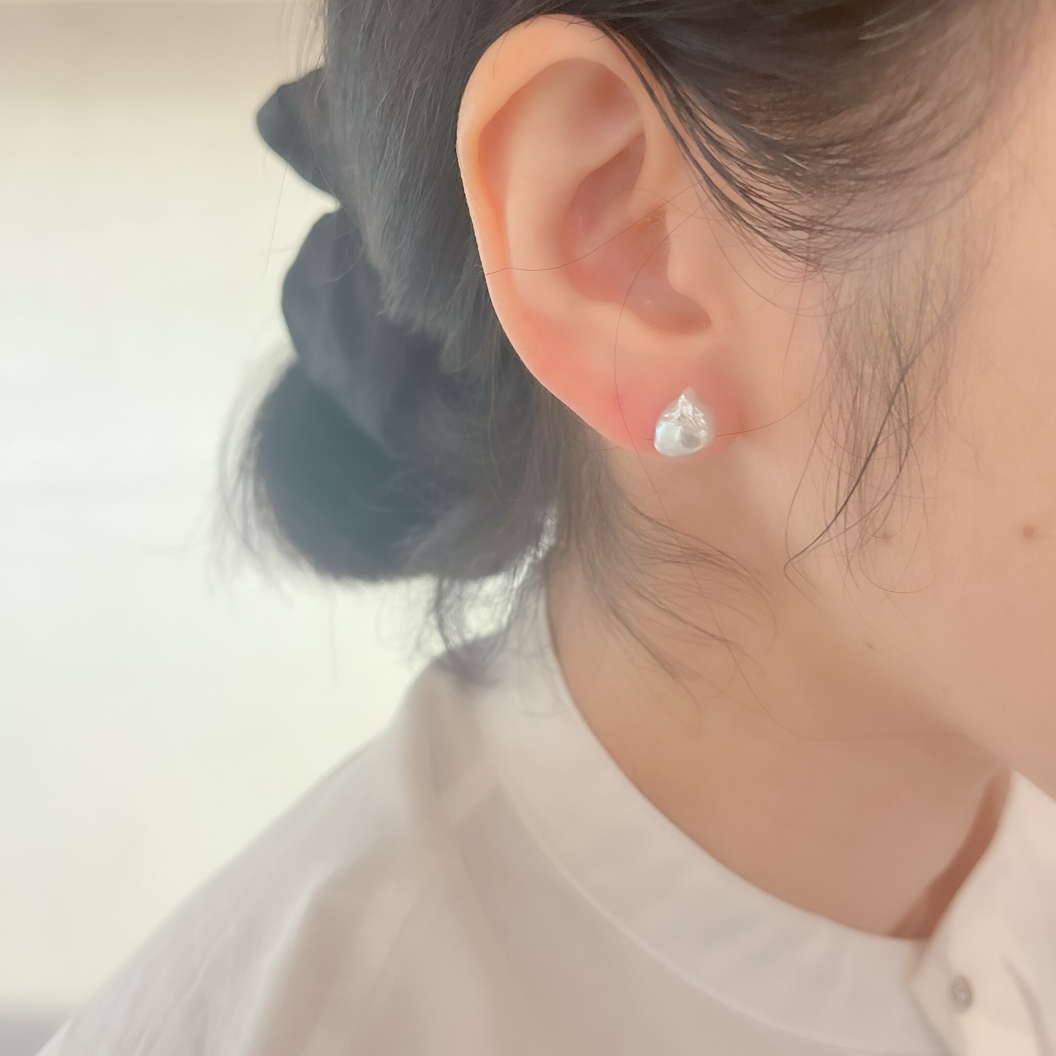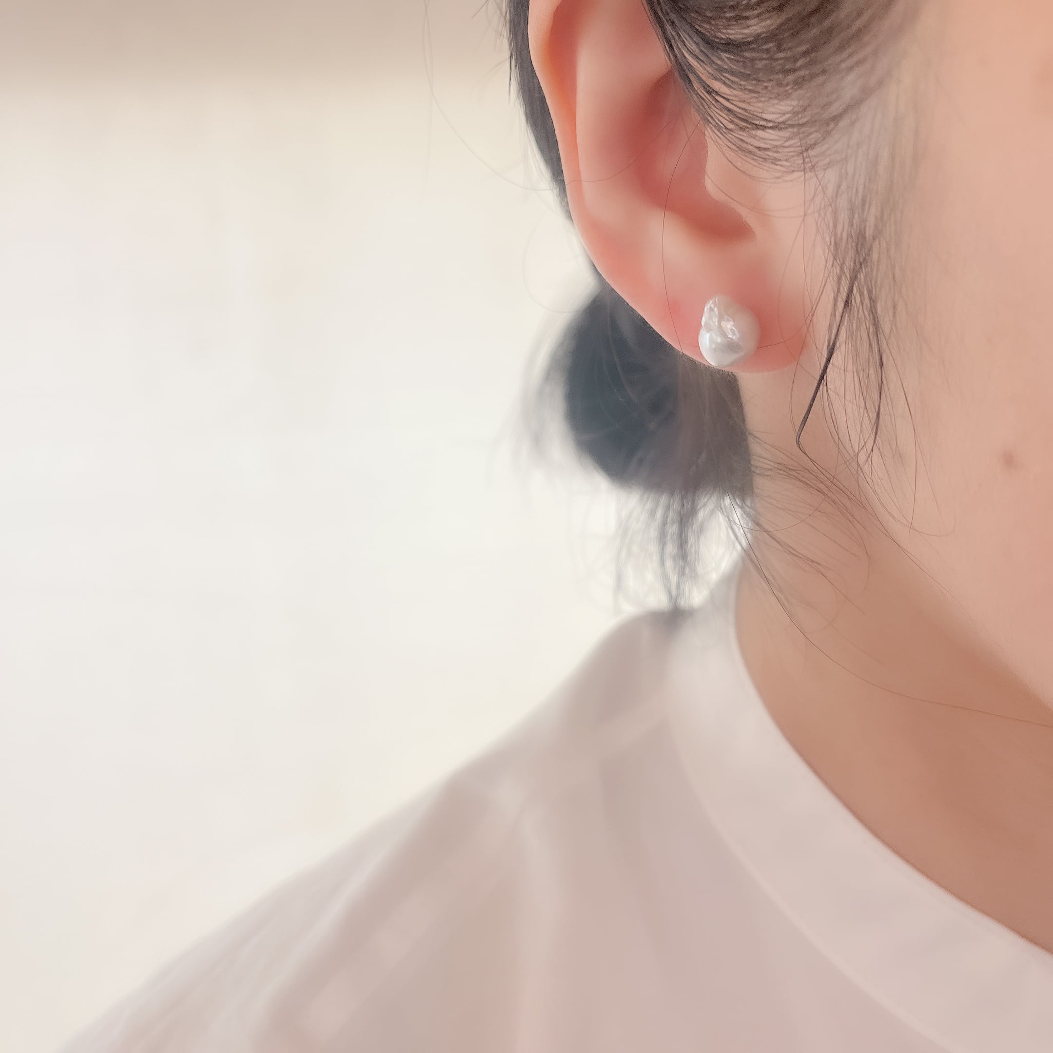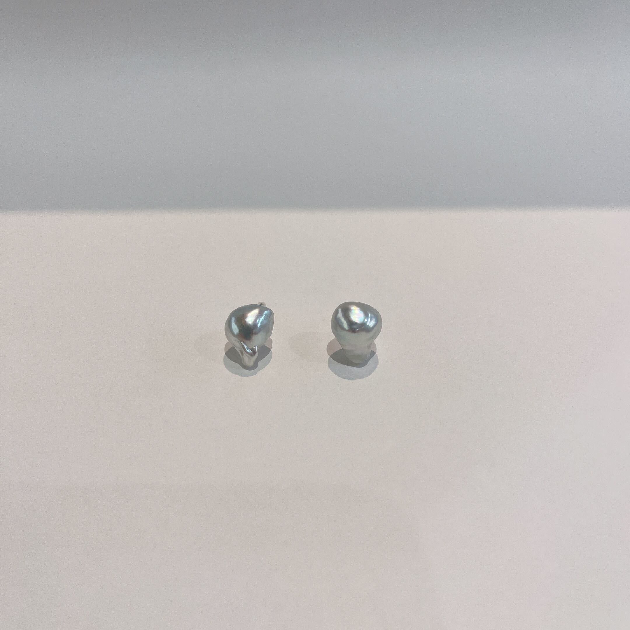 グレー色のパールの光沢が、上品な印象のピアスです。 素材:K14WG 石:アコヤパール 全長:約8-9mm 商品番号:42236