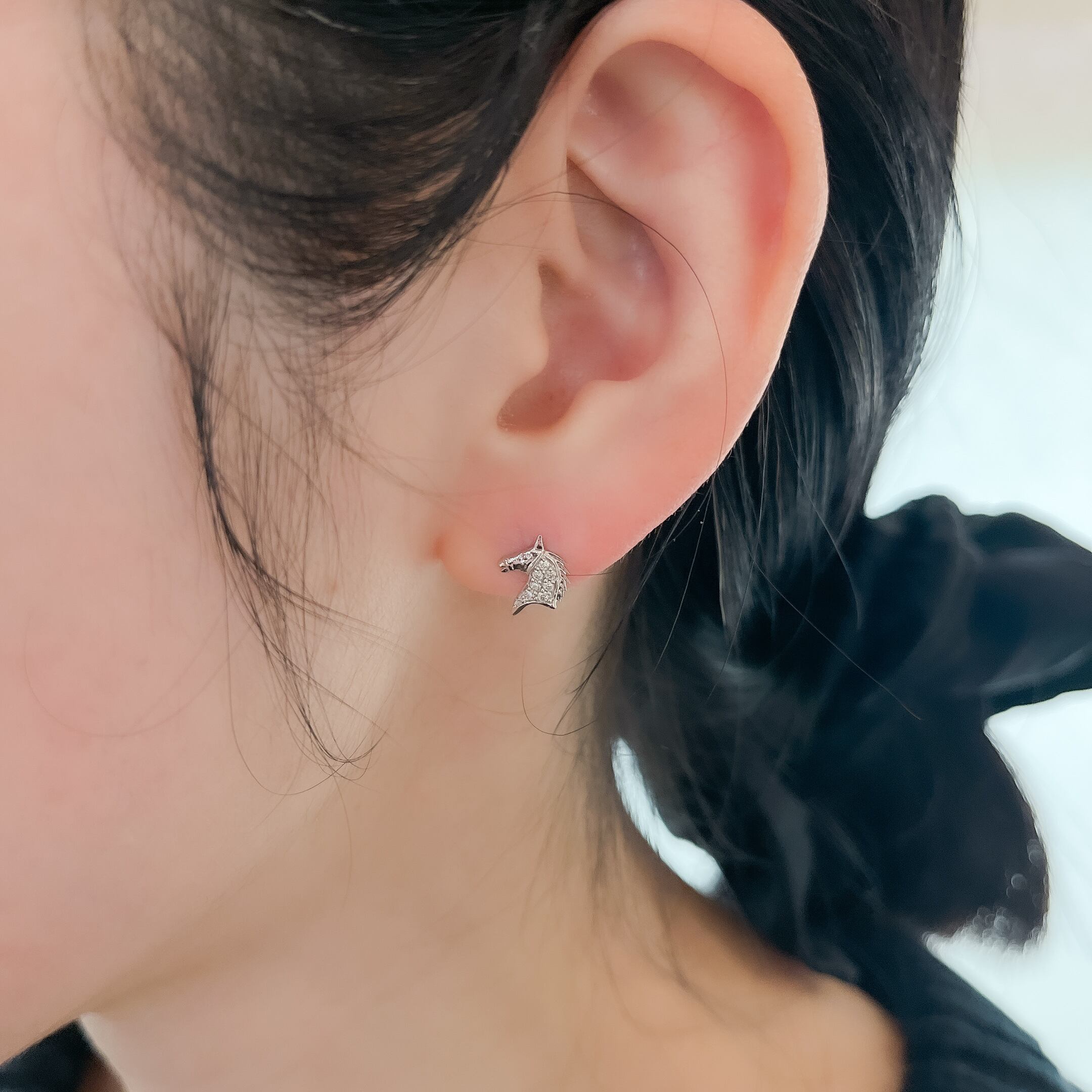 馬のモチーフが愛らしいピアス。 素材 : K18WG 石 : ダイヤモンド0.1ct サイズ:全長約10mm 商品番号:44149