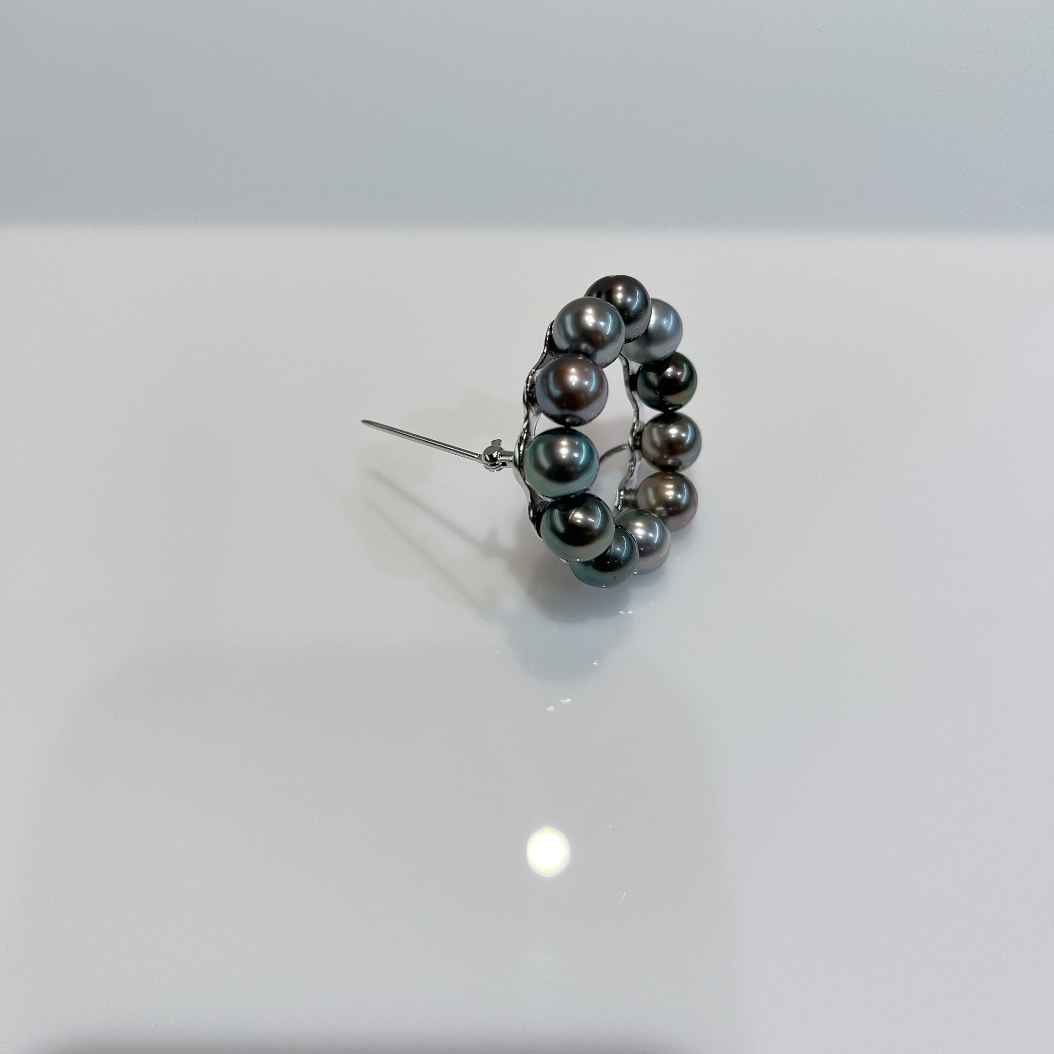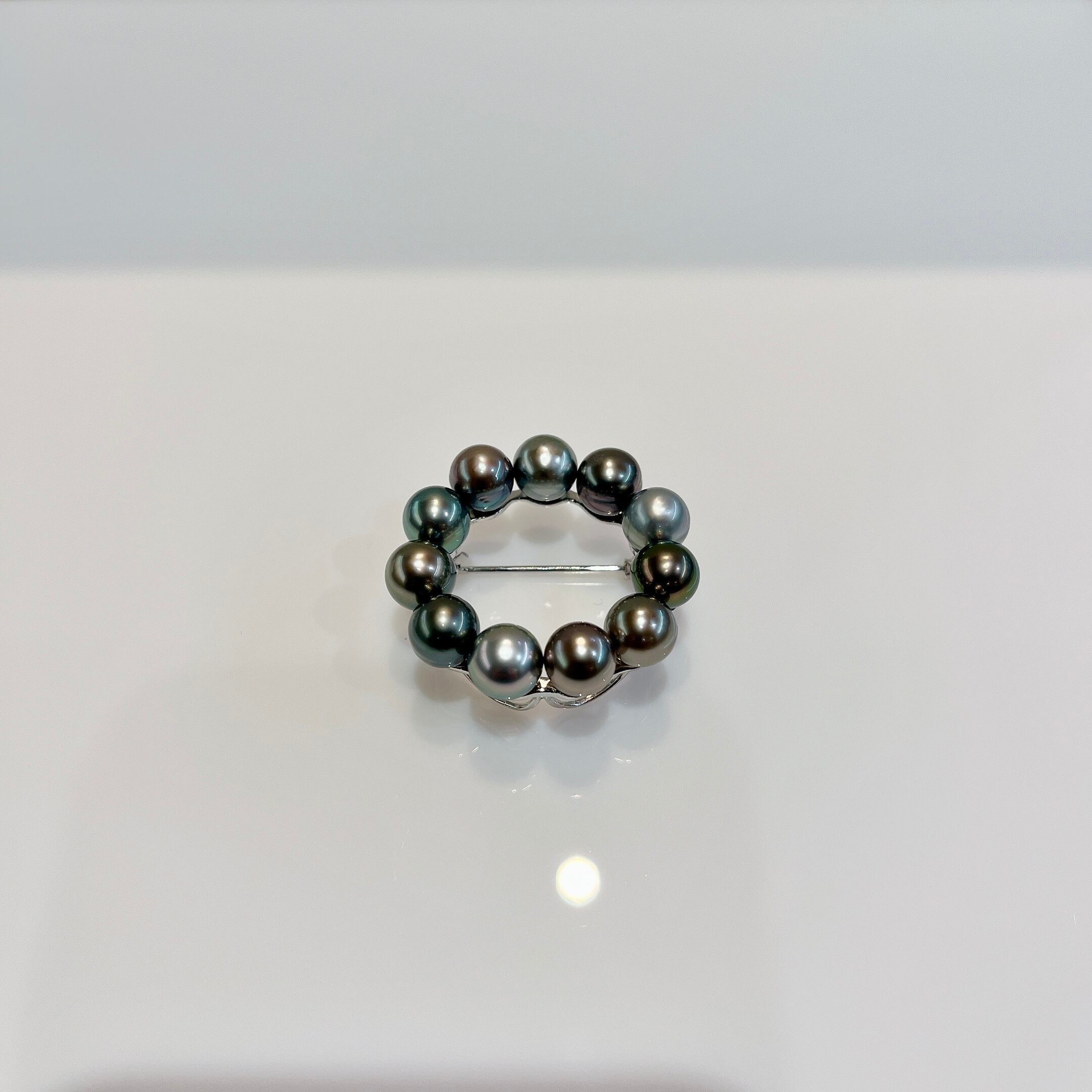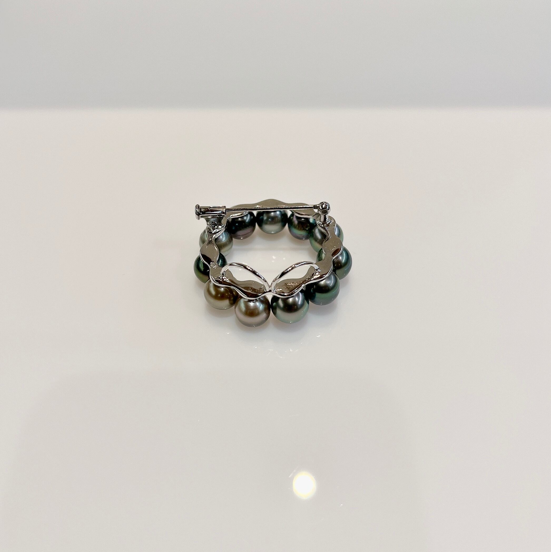 シンプルながらも存在感のあるブローチ。 素材 :SV 石 :タヒチマルチパール7-7.5mm サイズ:33mm×33mm 商品番号:44169
