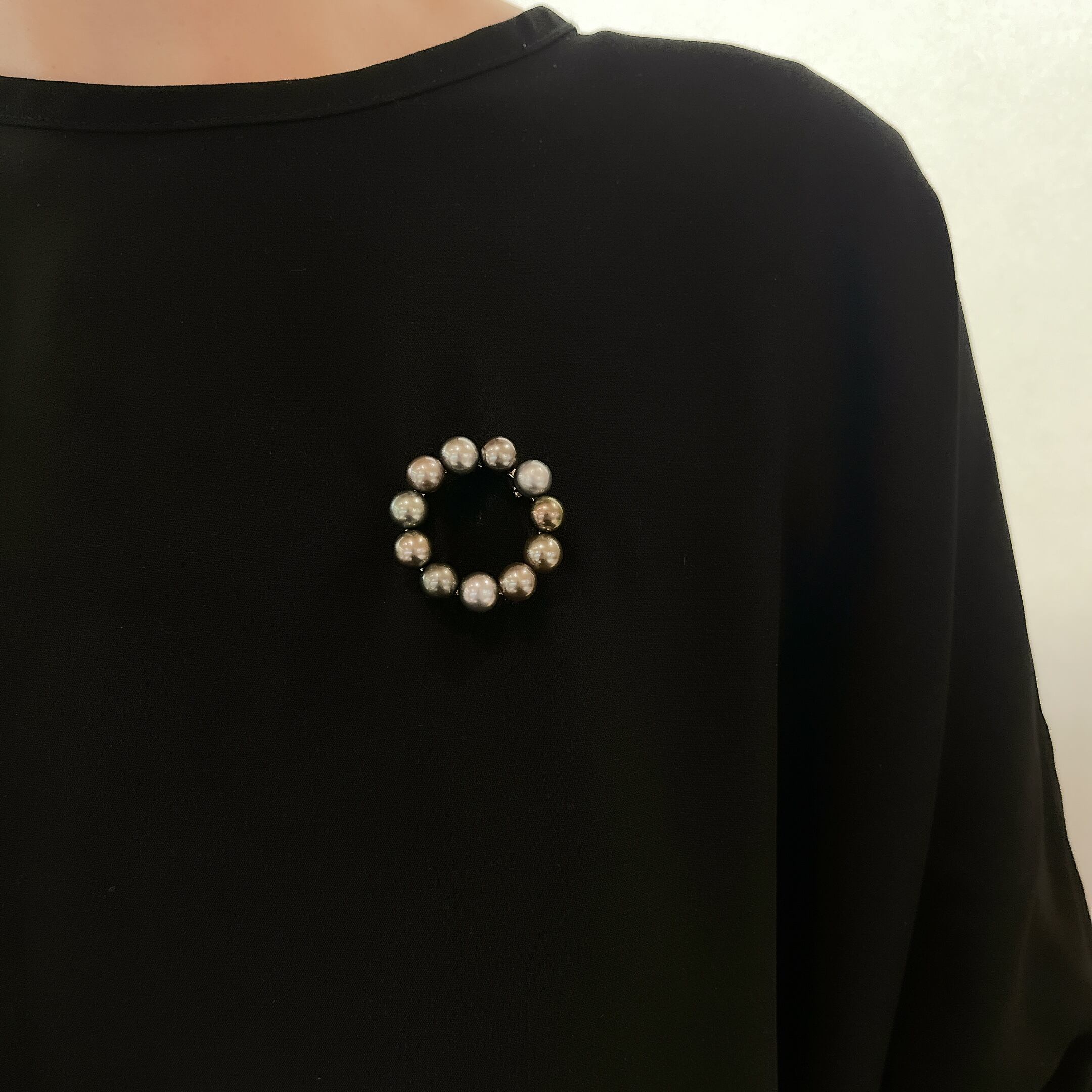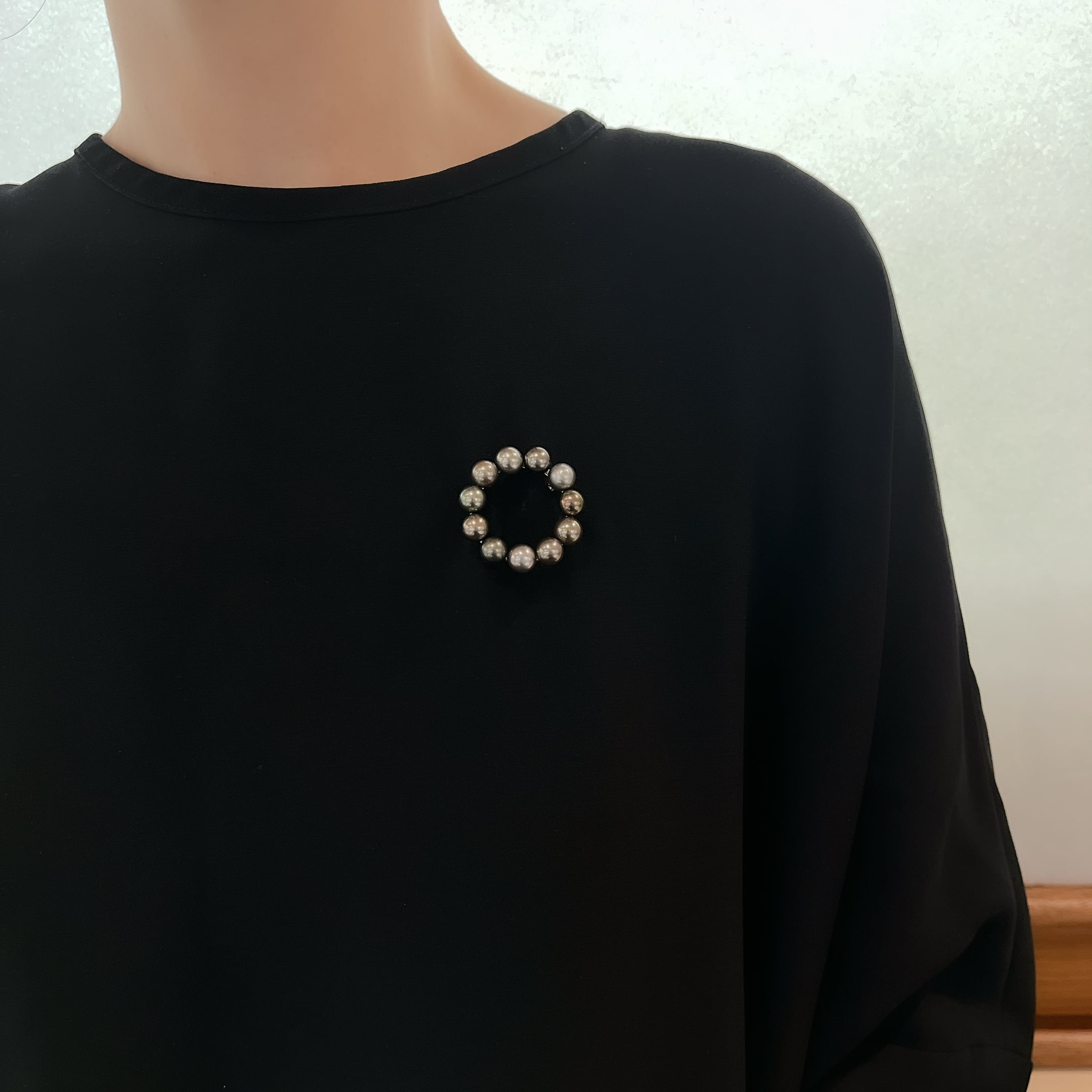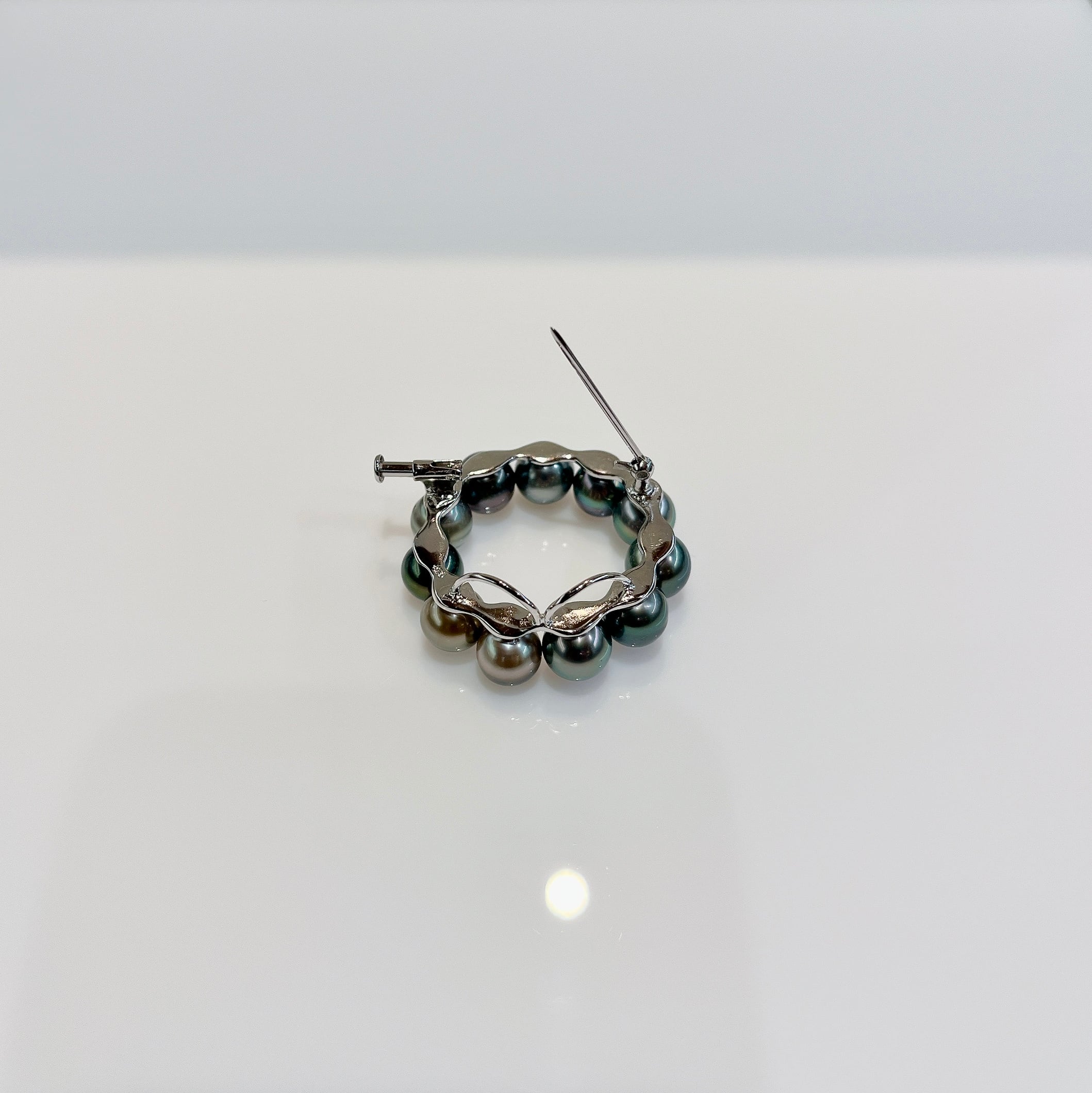 シンプルながらも存在感のあるブローチ。 素材 :SV 石 :タヒチマルチパール7-7.5mm サイズ:33mm×33mm 商品番号:44169