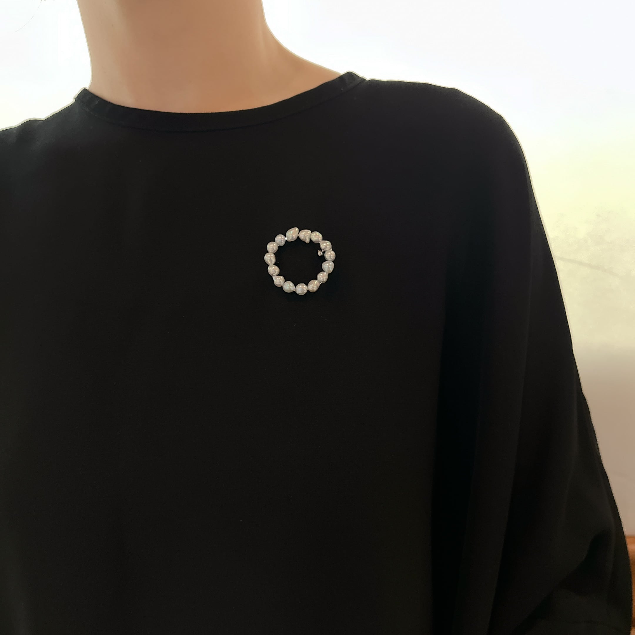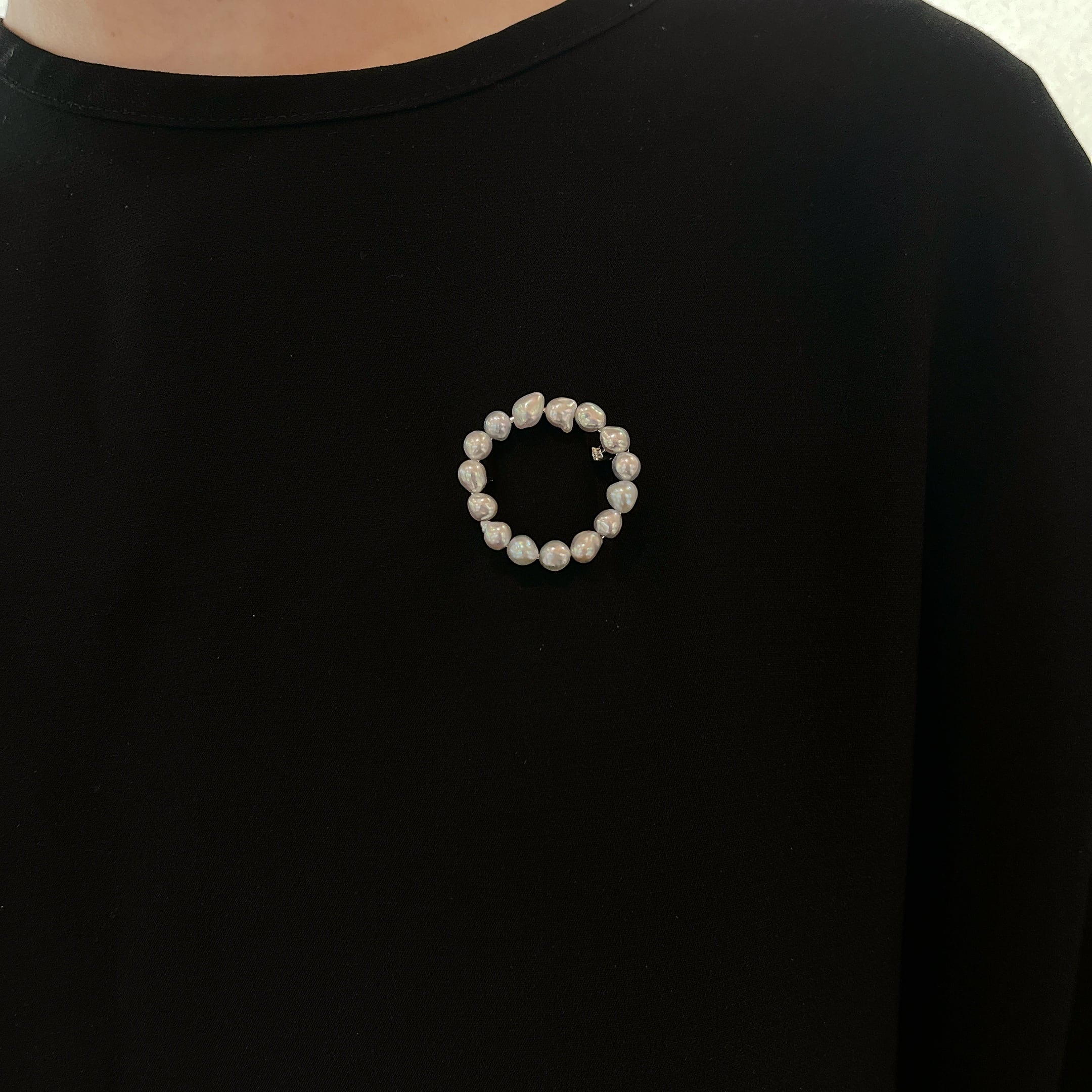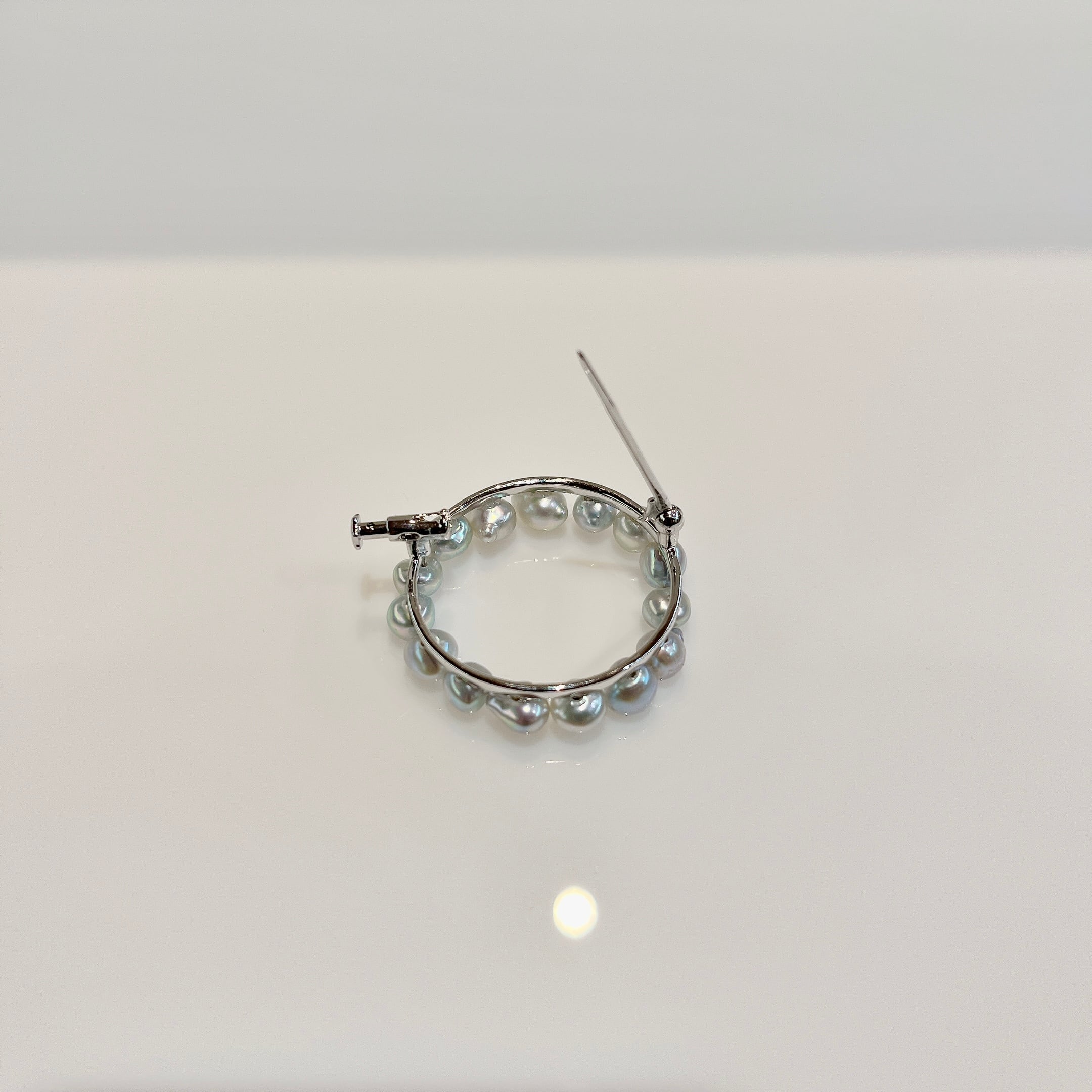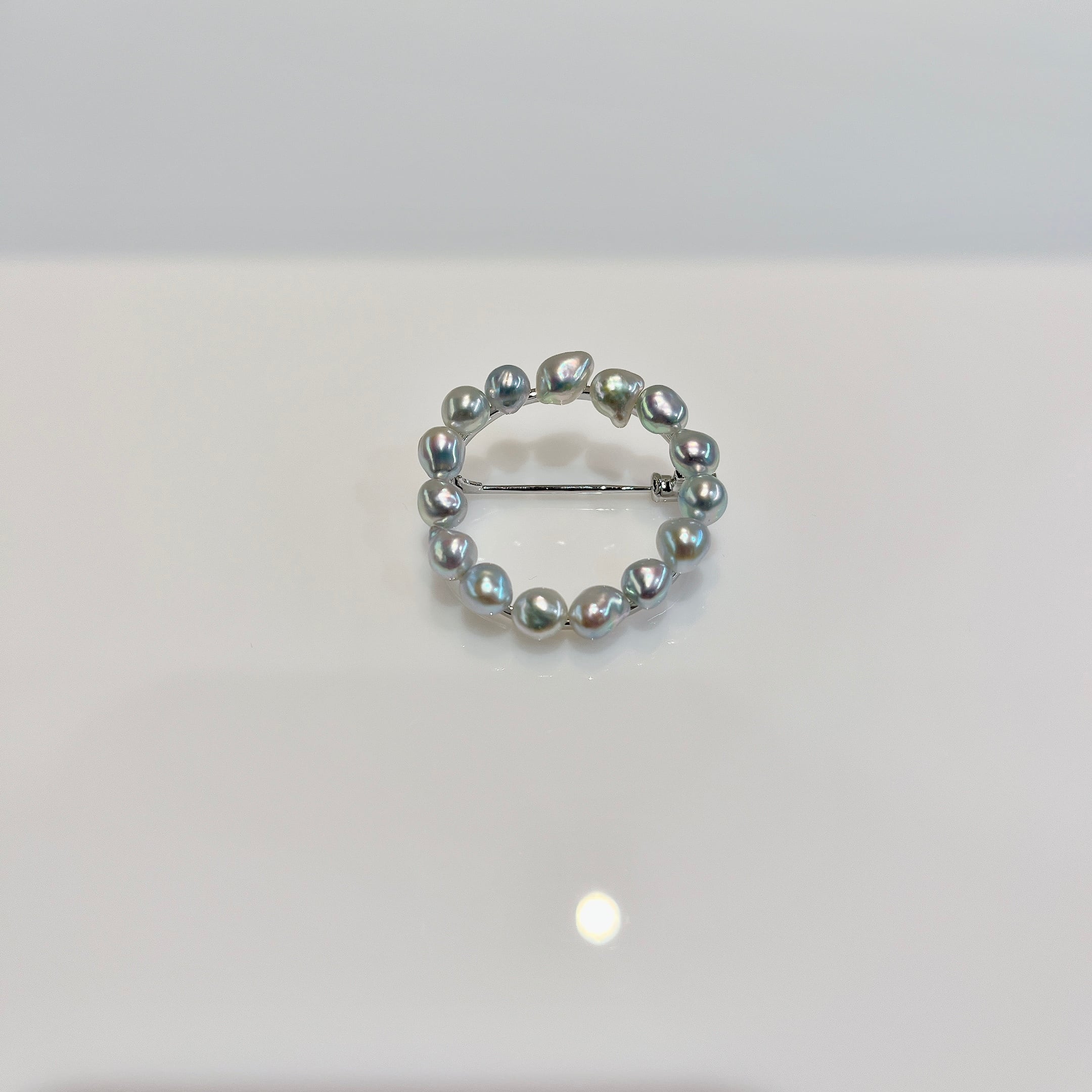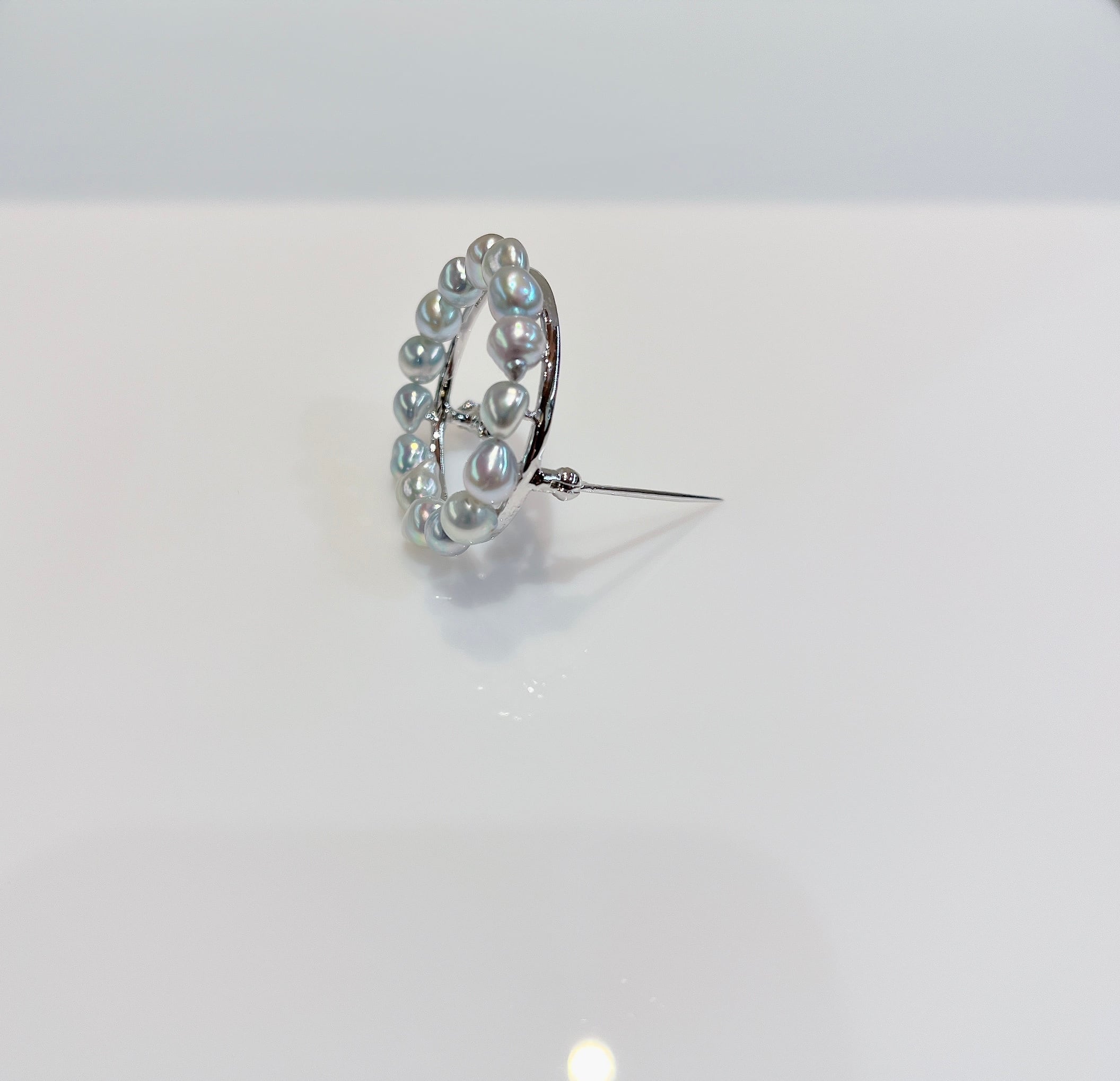 シンプルながらも存在感のあるブローチ。 素材 :SV 石 :アコヤパール5-5.5mm サイズ:32mm×32mm 商品番号:44172