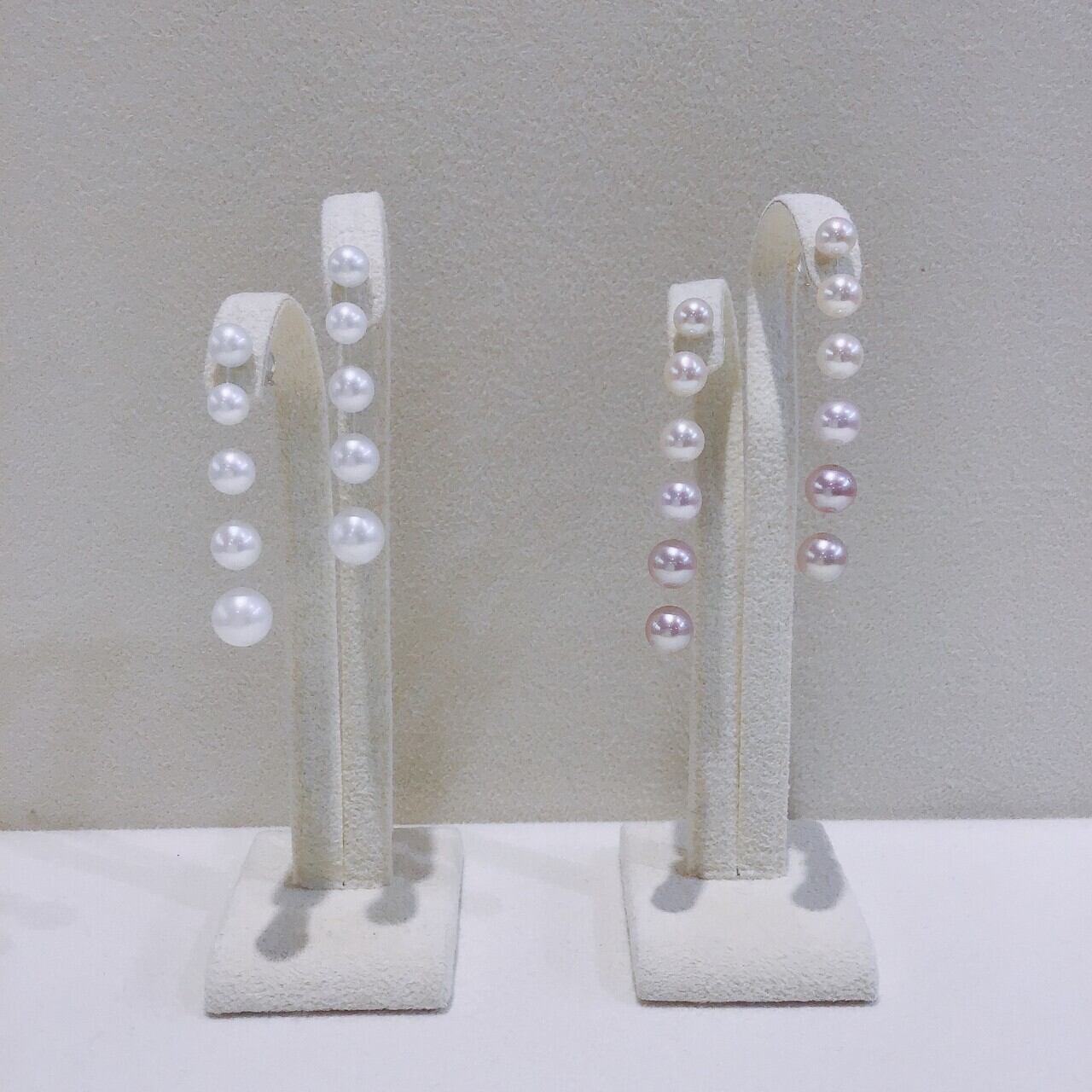 ほのかなパープルのグラデーションが女性らしい、淡水パールのピアス。 パーティーシーンはもちろんカジュアルにもお使いいただけます。 テグスにパールを通したデザインで動きがあり軽やかな印象です。 素材:淡水パール4.5-6.0mm 全長:約4.5cm 金具:K14WG 商品番号:4134
