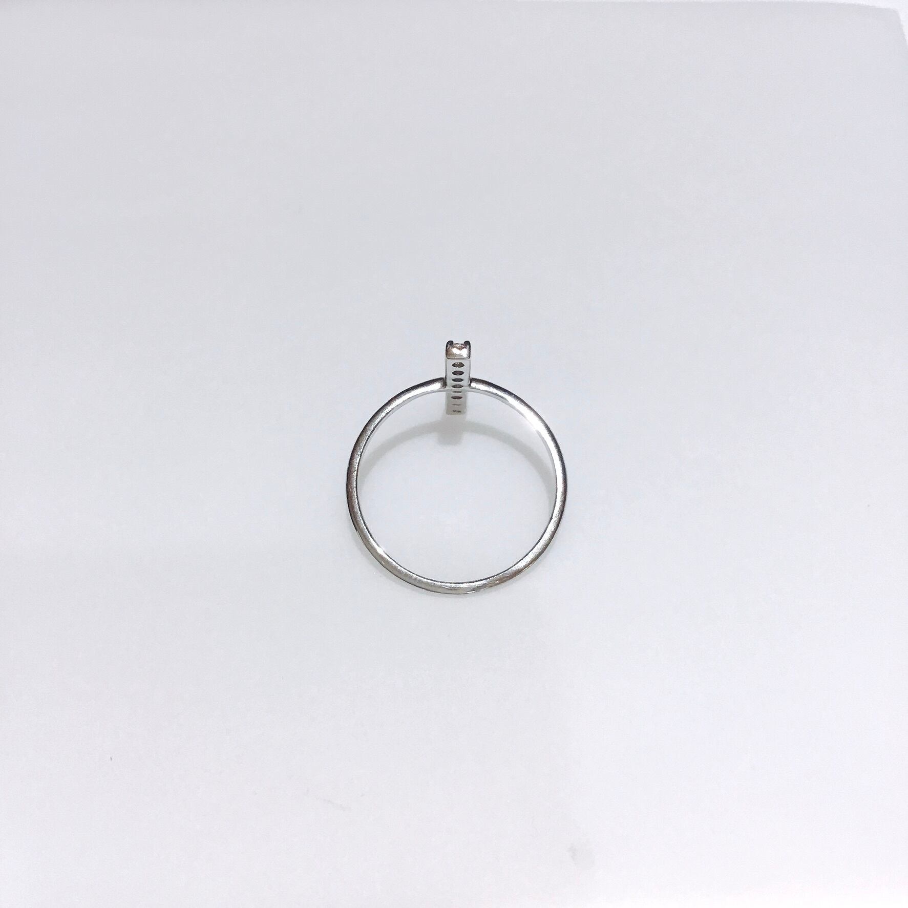 直線に並んだダイヤモンドがスタイリッシュでおしゃれなデザインリング。 モードな雰囲気でありながらシンプルで、どんなコーディネートにもマッチします。 サイズ直し可能ですので、ご注文前にお問合せくださいませ。 (店頭:075-231-6116) ※サイズ直しは二週間ほどかかります ※初回のみ無料でおサイズ直し致します 素材 : プラチナ 石:ダイヤモンド 0.2ct サイズ:11号 (サイズ直し可能) 商品番号:40374