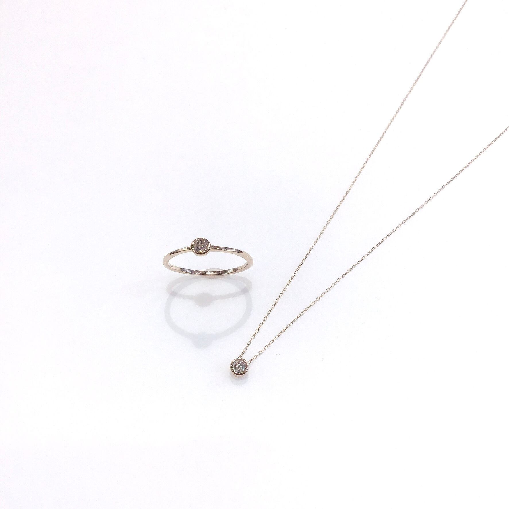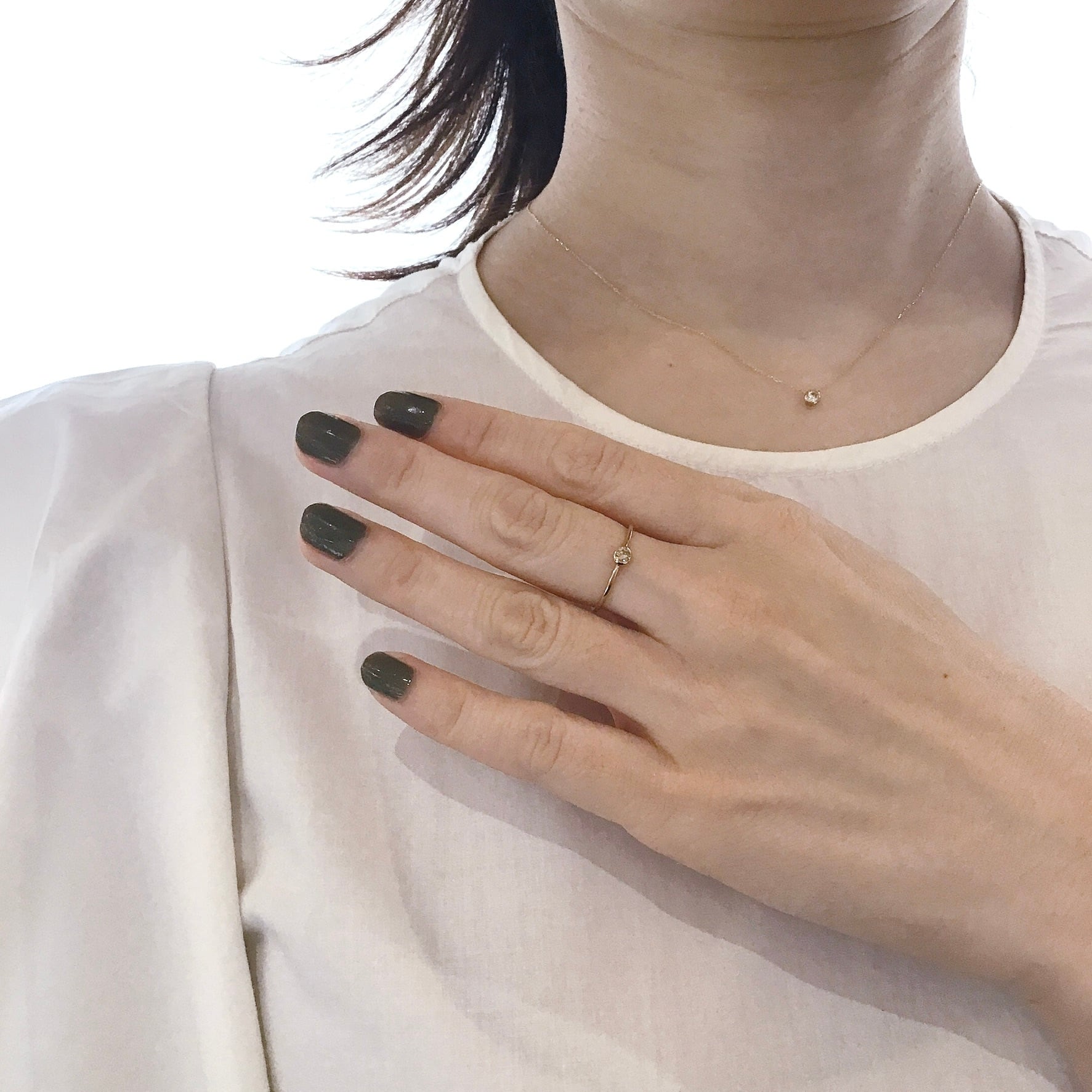 繊細な輝きが上品なダイヤモンドリング。 ピンクゴールドを使用しているので、女性らしい柔らかな雰囲気に。 同じデザインのネックレスとセットで着けていただいても◎ サイズ直し可能ですので、ご注文前にお問合せくださいませ。 (店頭:075-231-6116) ※サイズ直しは二週間ほどかかります ※初回のみ無料でおサイズ直し致します 素材 : K18PG 石:ダイヤモンド 0.1ct サイズ:11号 (サイズ直し可能) 商品番号:40252