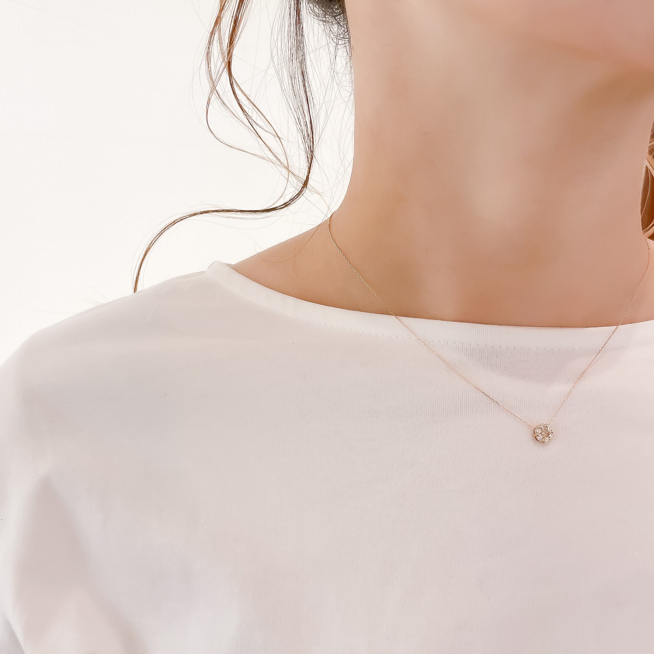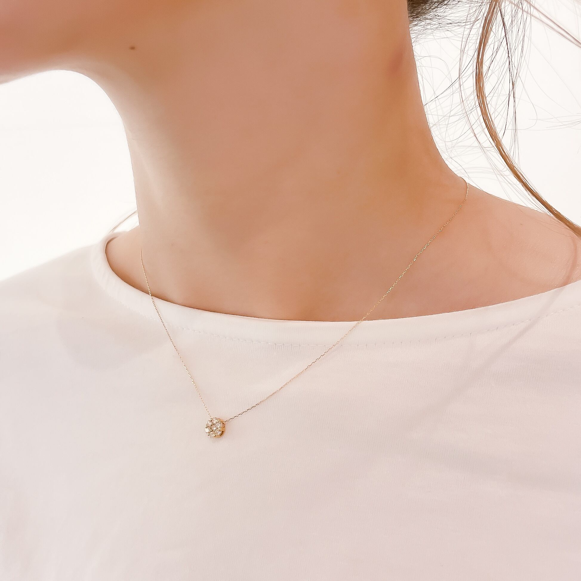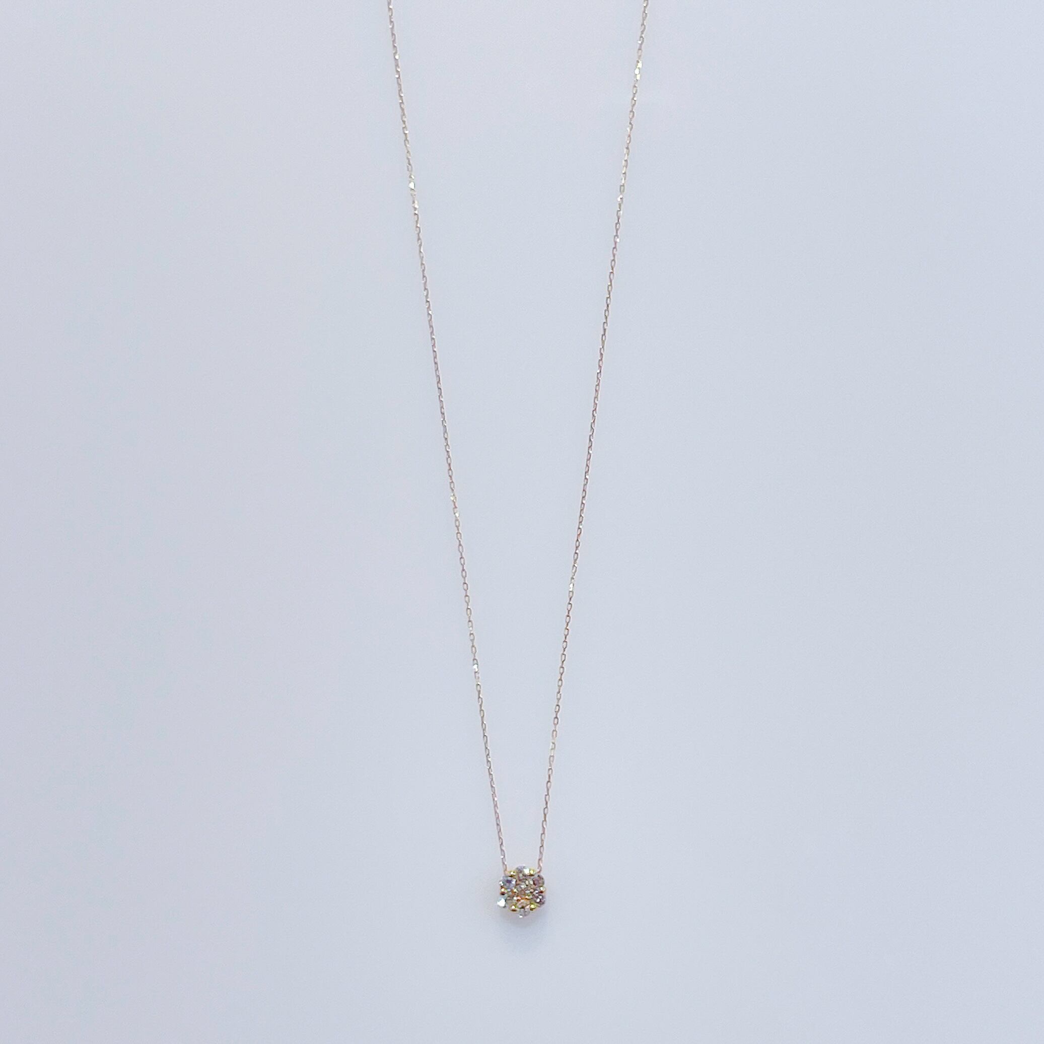7石のダイヤモンドを使用したペンダントネックレス。 繊細かつシンプルなデザインでありながらボリューム感もあり、上品に胸元で輝きます。 素材 : K18YG 石:ダイヤモンド 0.2ct 全長:約40cm 商品番号:40153