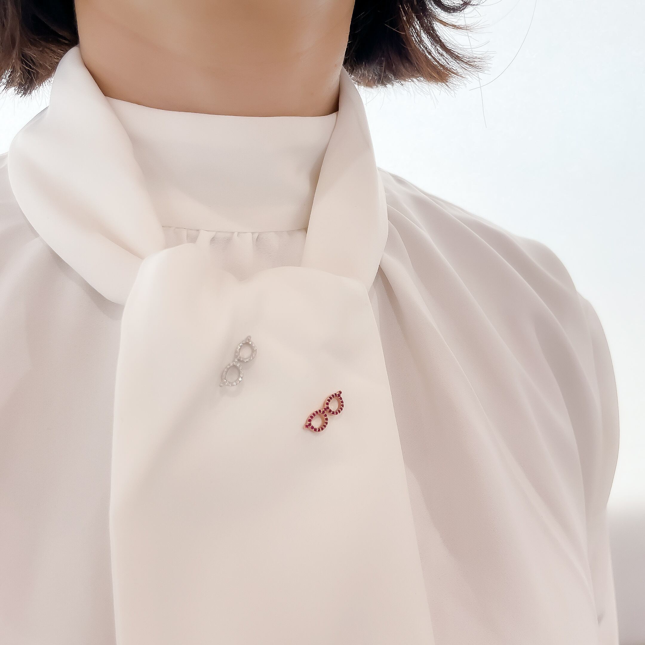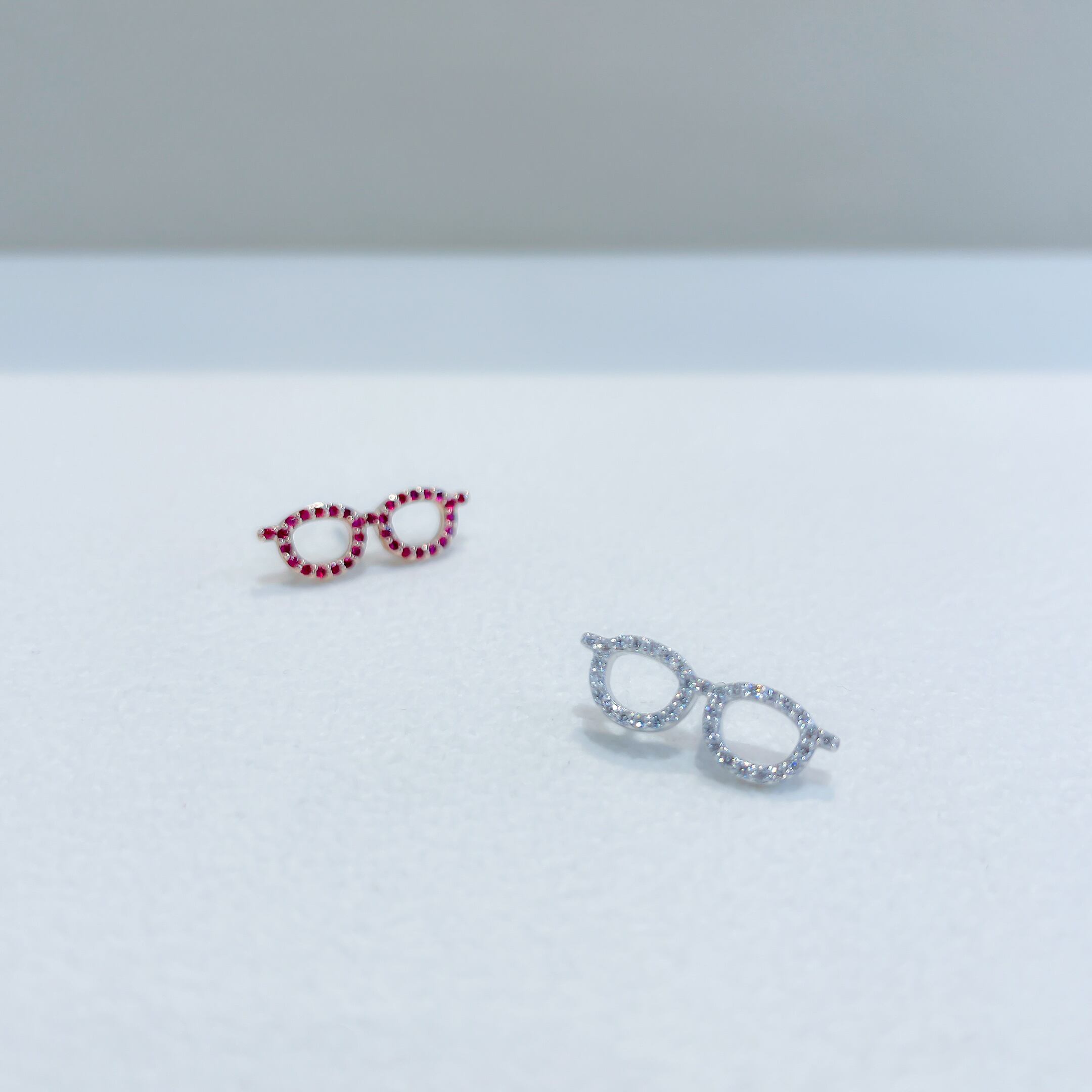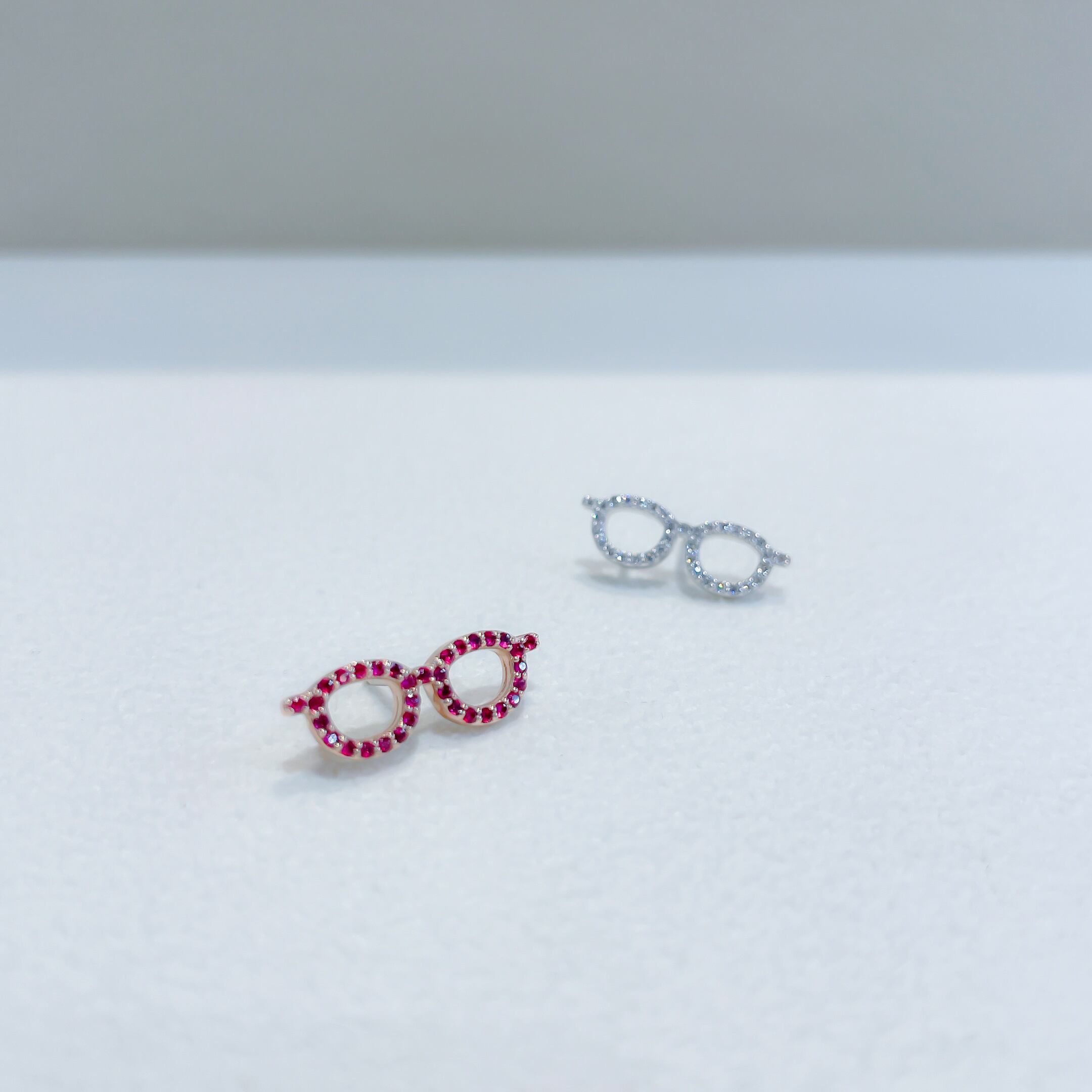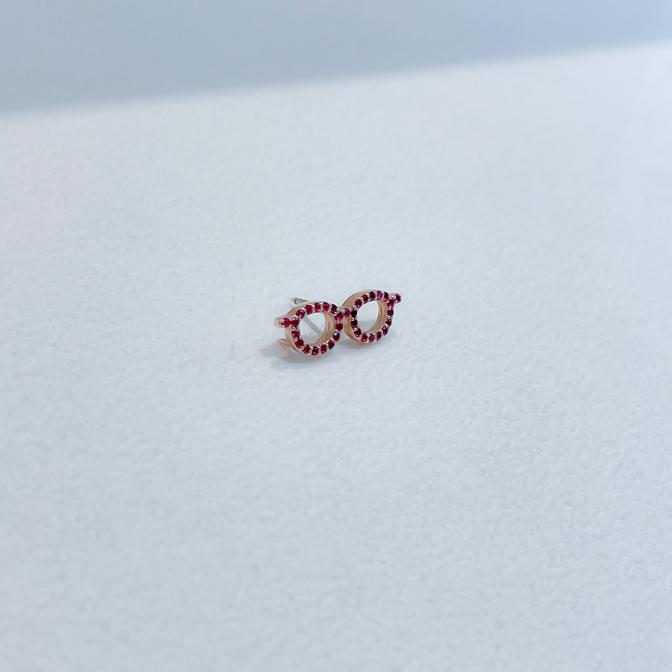 眼鏡モチーフのお洒落なピンブローチ。 さりげなくコーディネートのアクセントに。 素材 : K10PG 石 : ルビー 0.20ct サイズ:約7mm×12mm 商品番号:35484