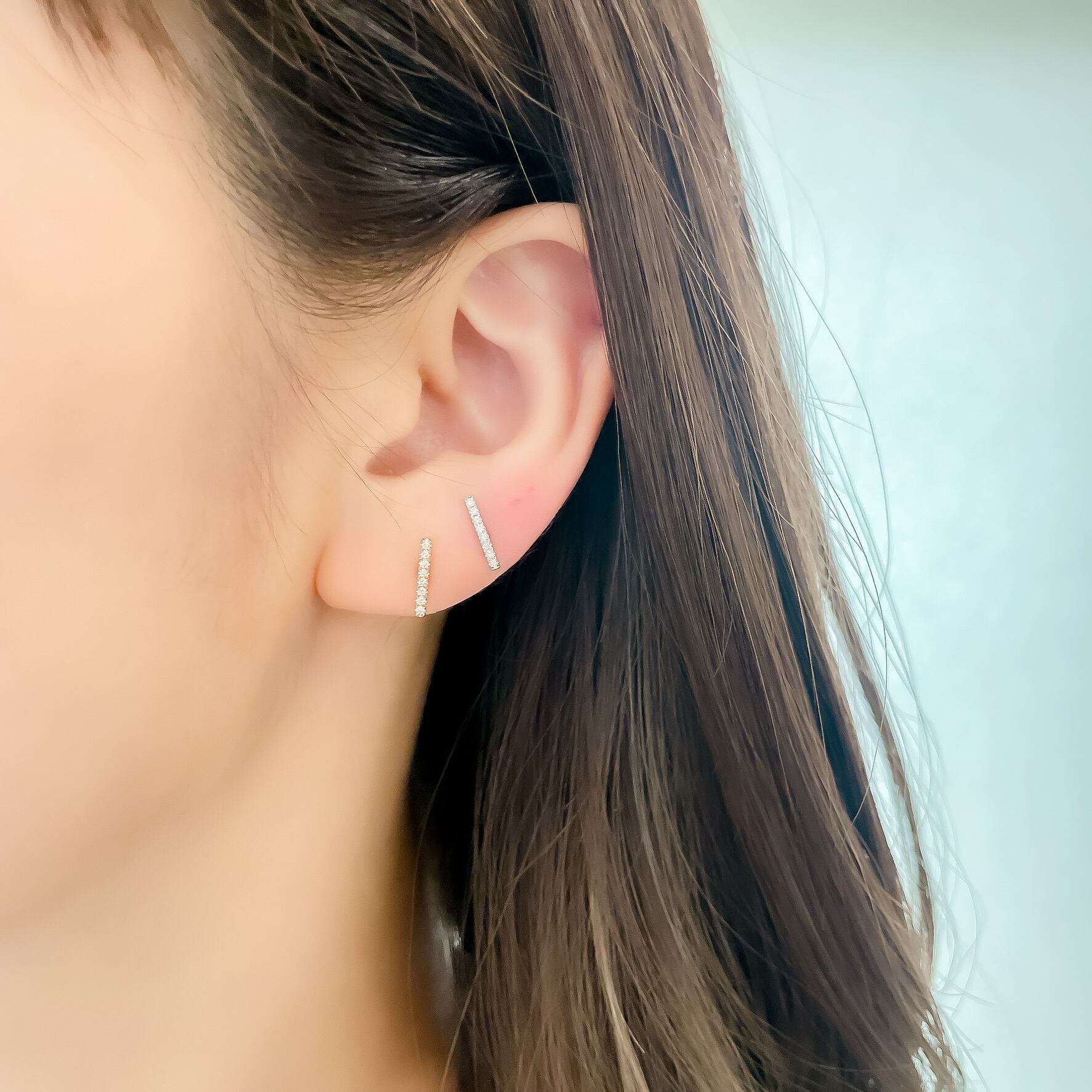 直線フォルムのダイヤモンドピアス。 素材 : K18PG 石 : ダイヤモンド 0.08ct サイズ:約12mm 商品番号:42319