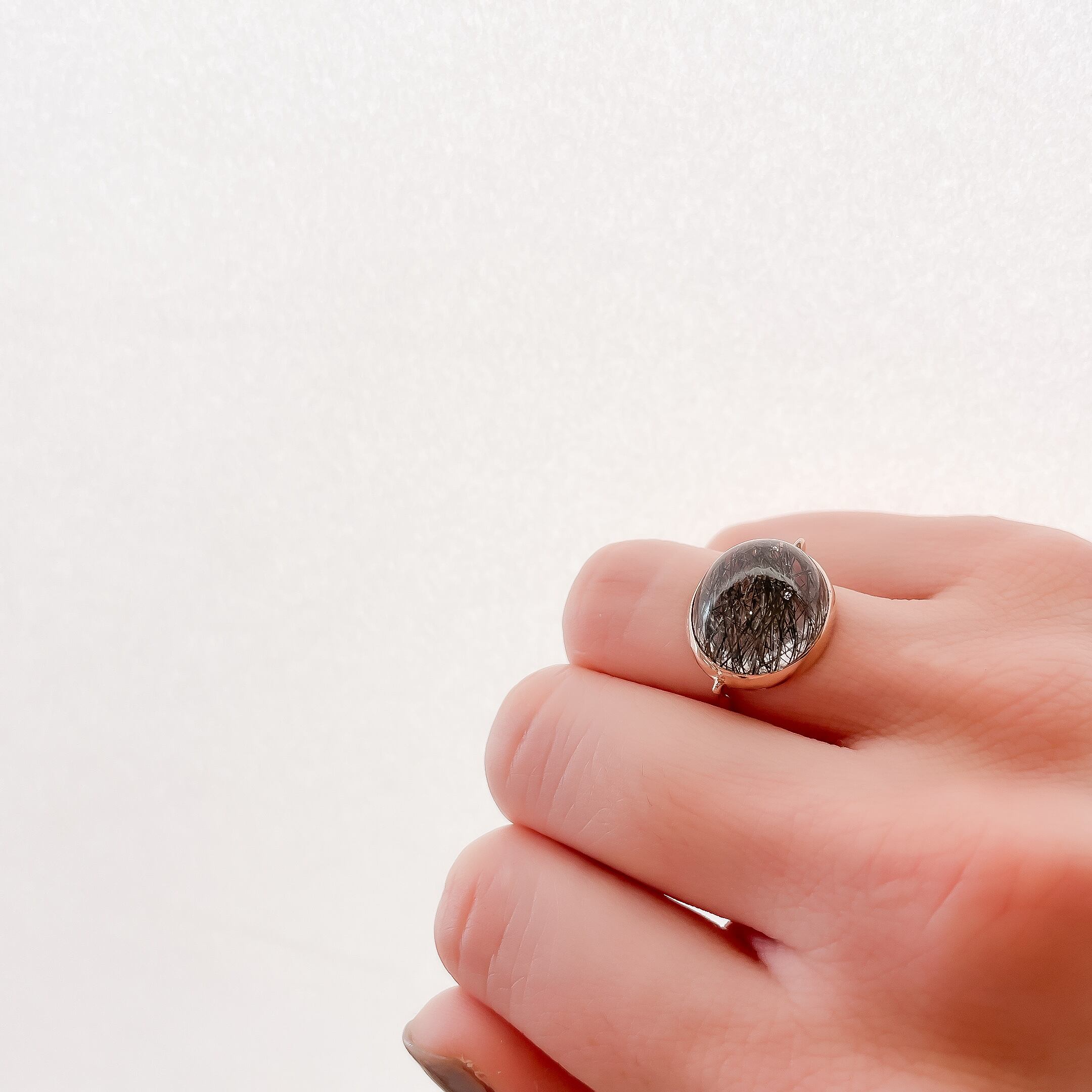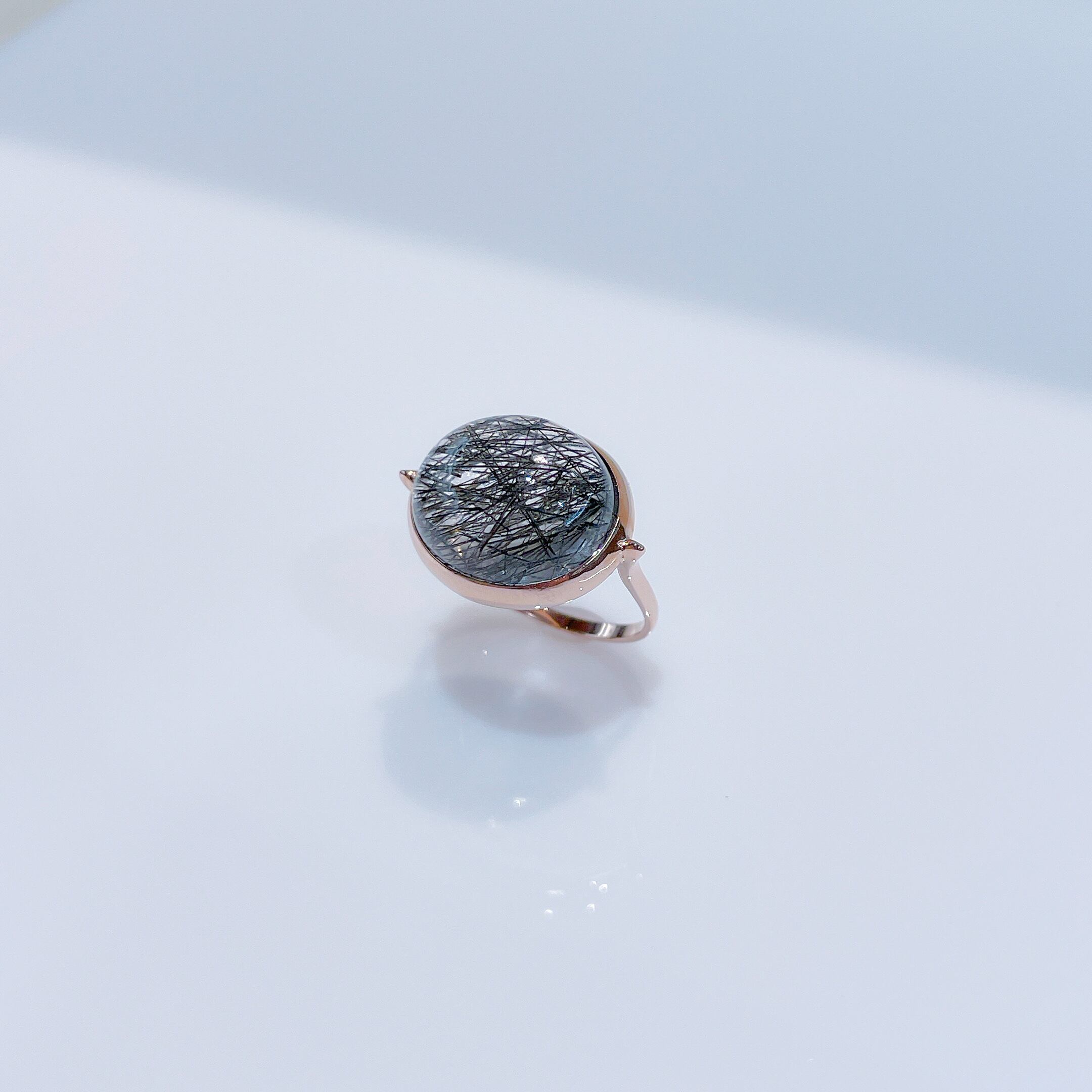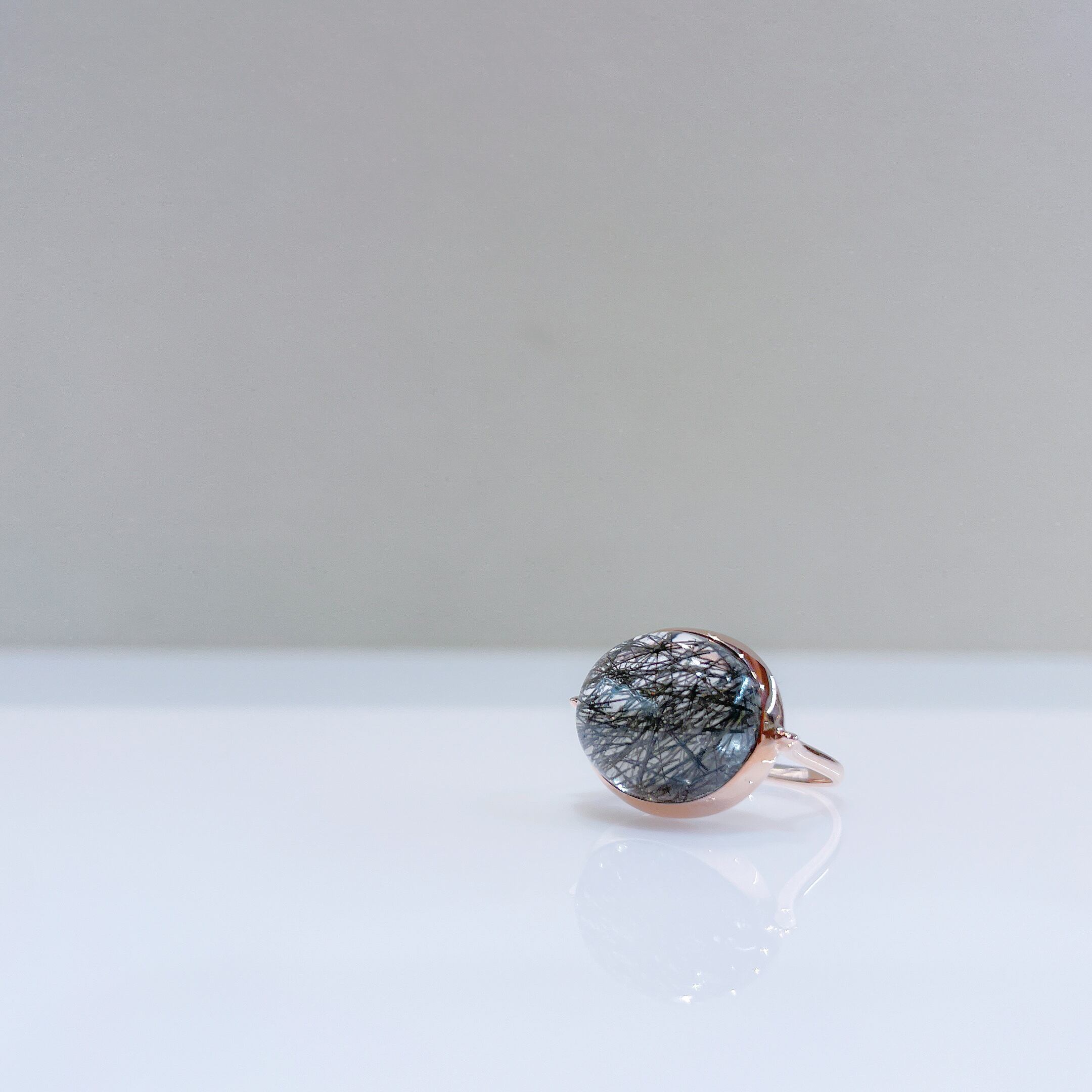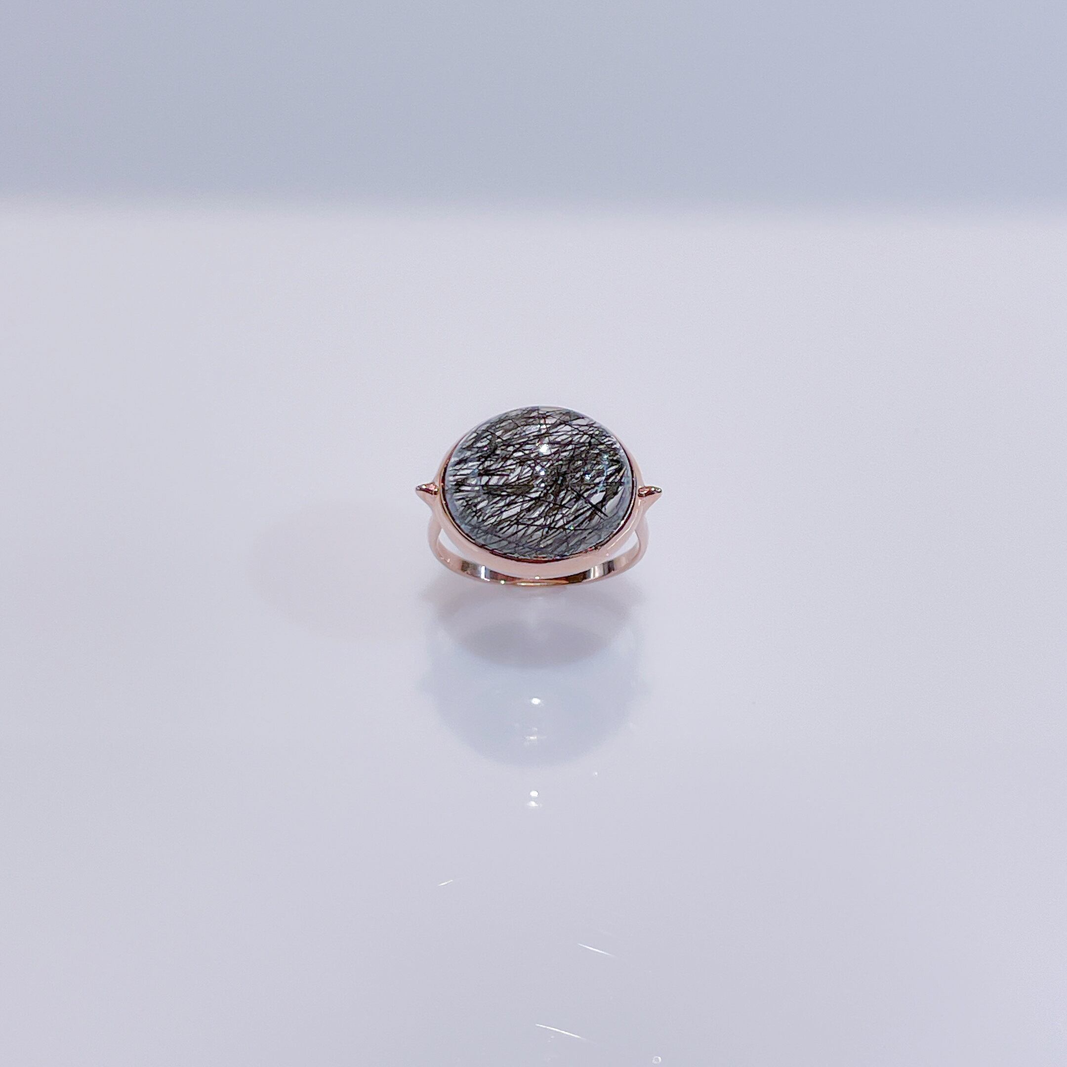 大粒のブラックルチルクォーツを使用したシックなリング。 素材 : K10PG 石:ブラックルチルクォーツ 12mm×14mm サイズ:約9号 (サイズ直し可能) 商品番号:42368
