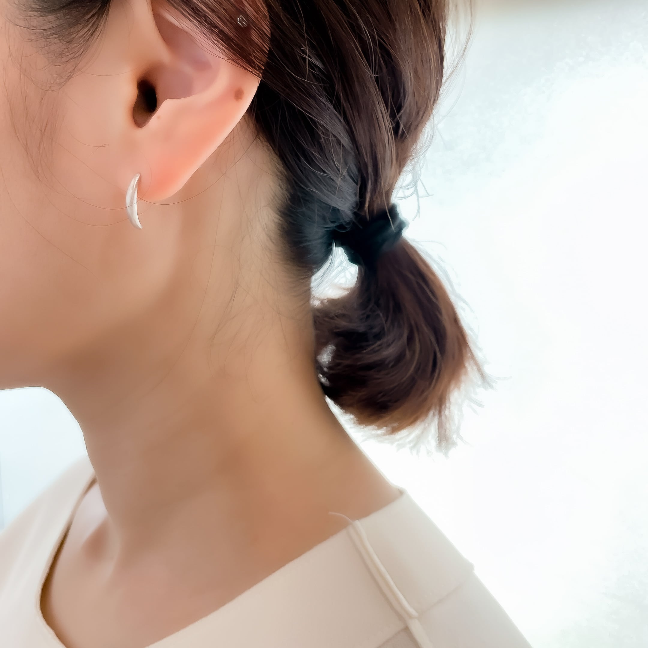 つや消し加工が施され、スッキリと洗練された印象を与える地金のピアス。 素材:K10WG 全長:15mm 商品番号:42372