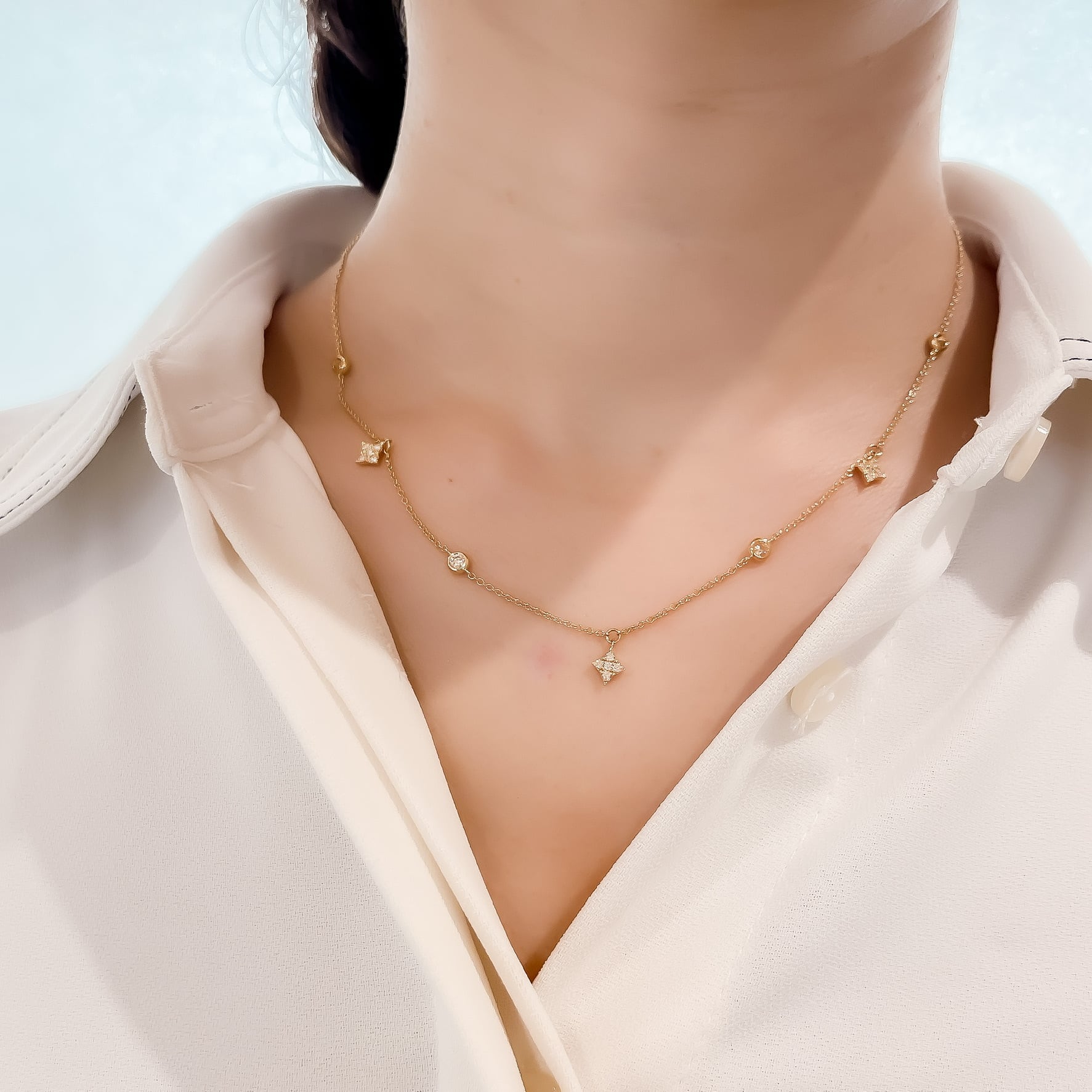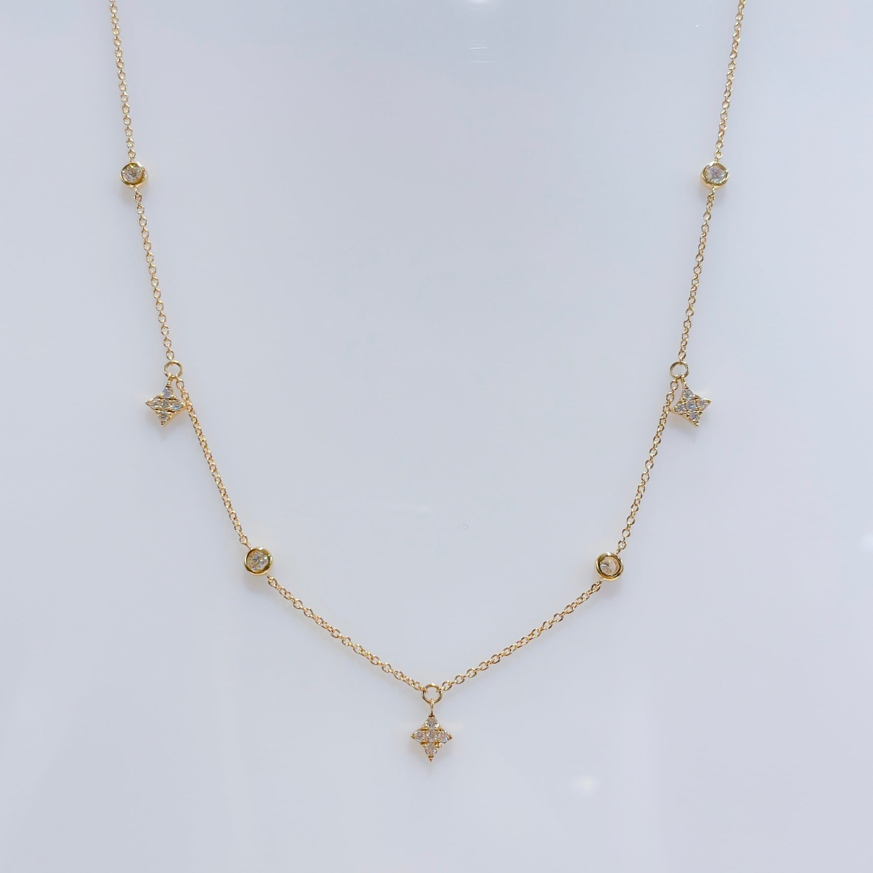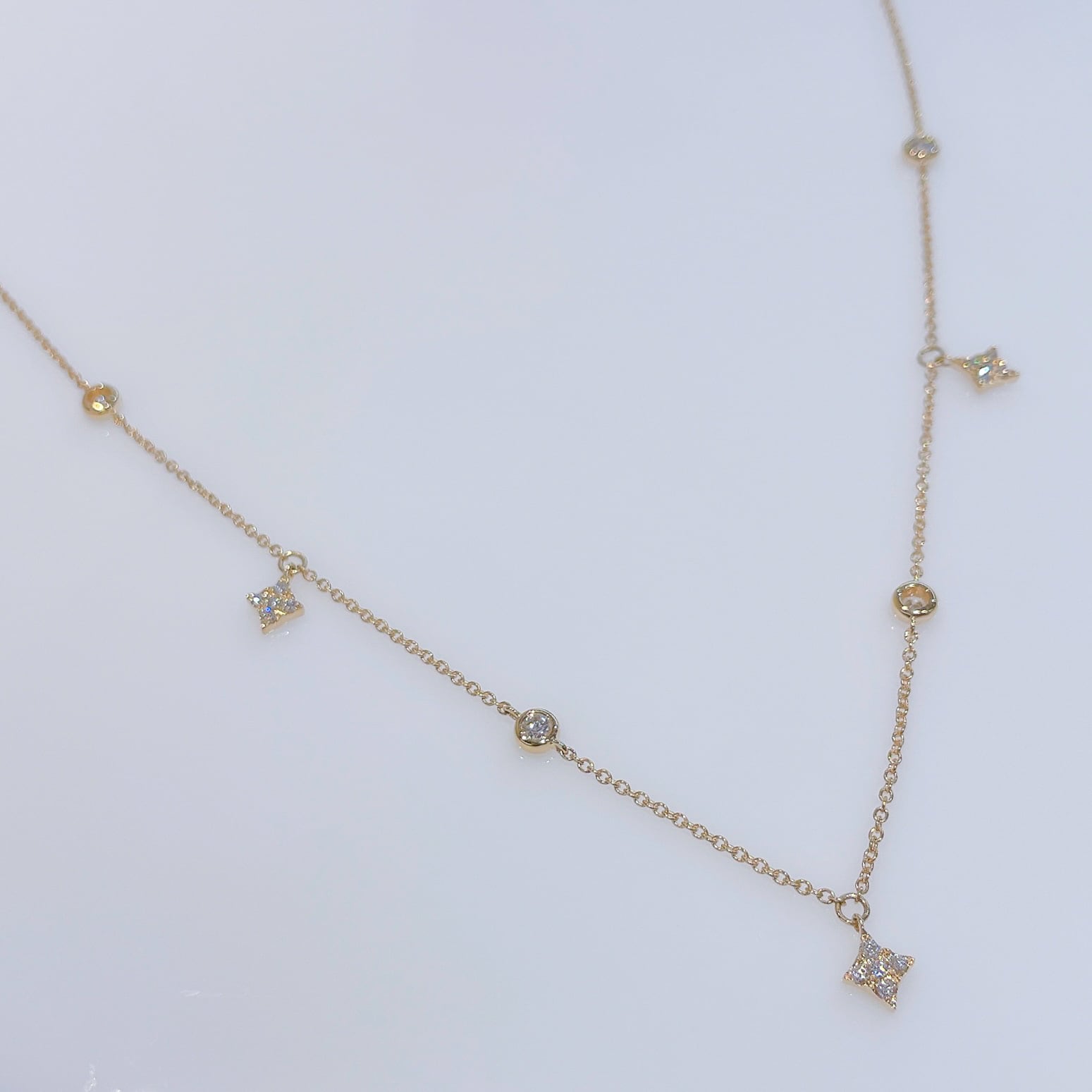 なめらかに肌に沿い、ダイヤのチャームが華やかに輝くネックレス。 素材 : K18YG 石:ダイヤモンド 0.36ct 全長:約45cm 商品番号:435