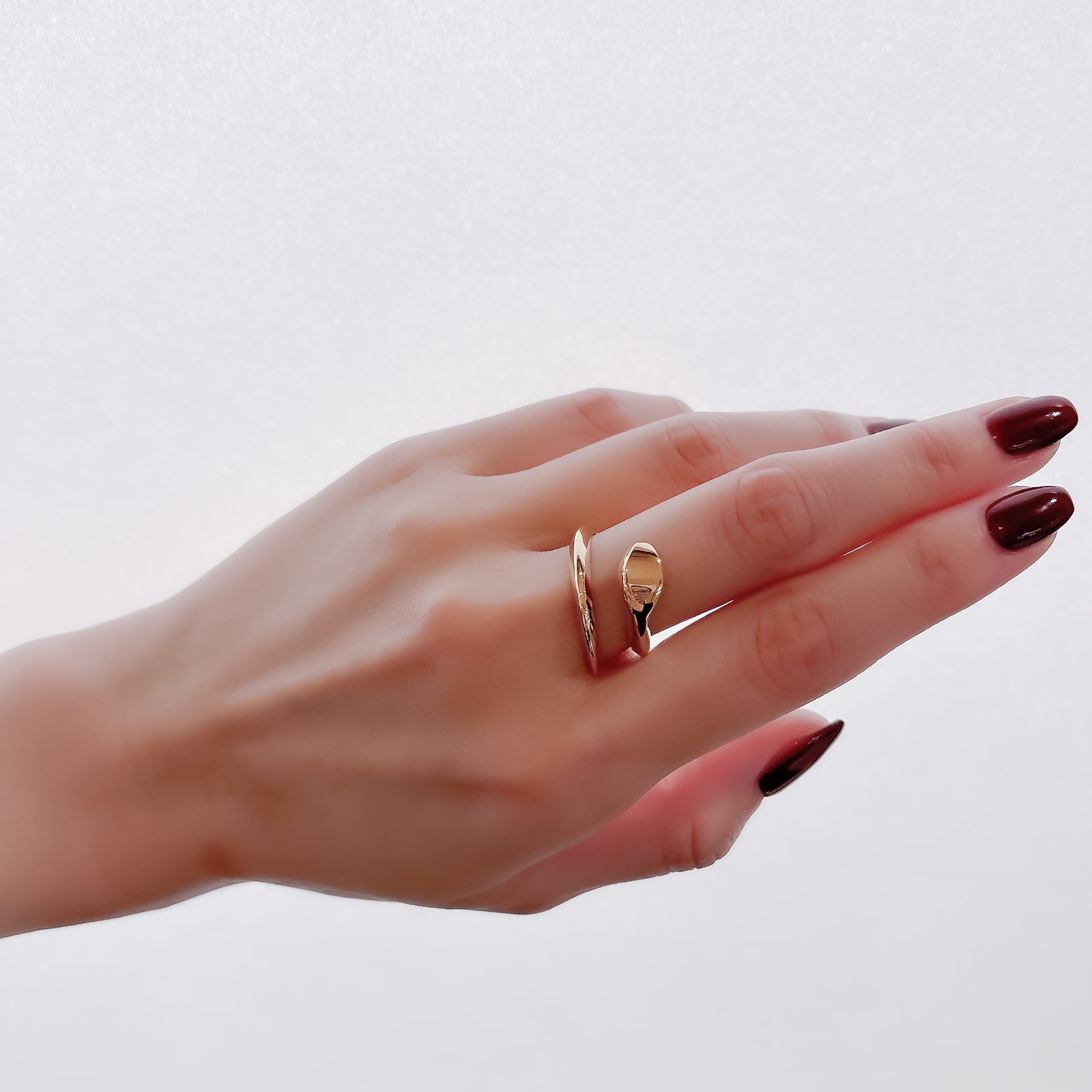シンプルながらもさりげない光沢感が美しい、ヘビのようなモチーフのリング。 素材 : K18YG サイズ:14号 商品番号:4336