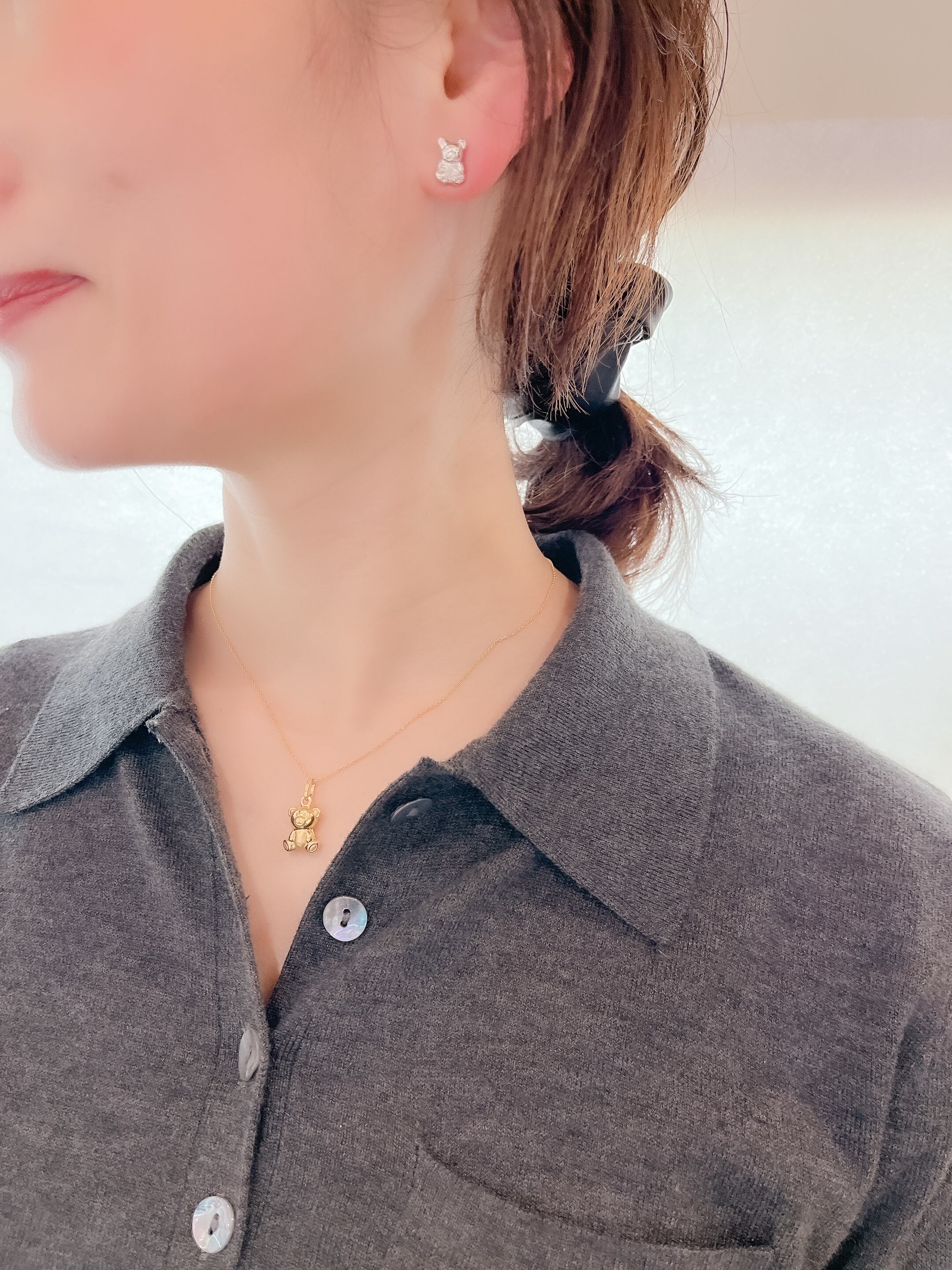 クマのモチーフが愛らしいデザインのピアスです。 素材 : K18WG サイズ:全長1cm 商品番号:43184